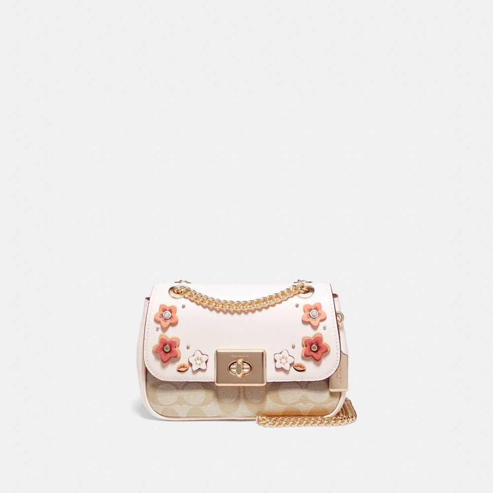 MINI CASSIDY CROSSBODY IN SIGNATURE CANVAS WITH FLORAL APPLIQUE