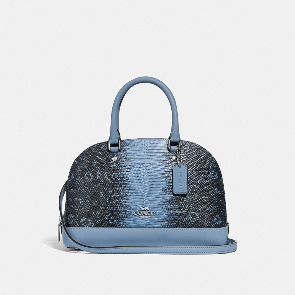 Lizard-embossed leather with smooth leather details| Inside multifunction pockets| Zip closure, fabric lining| Handles with 3 1/2" drop| Outside slip pocket| Detachable strap with 21 1/2" for shoulder or crossbody wear| 10 1/4" (L) x 7" (H) x 4" (W)
