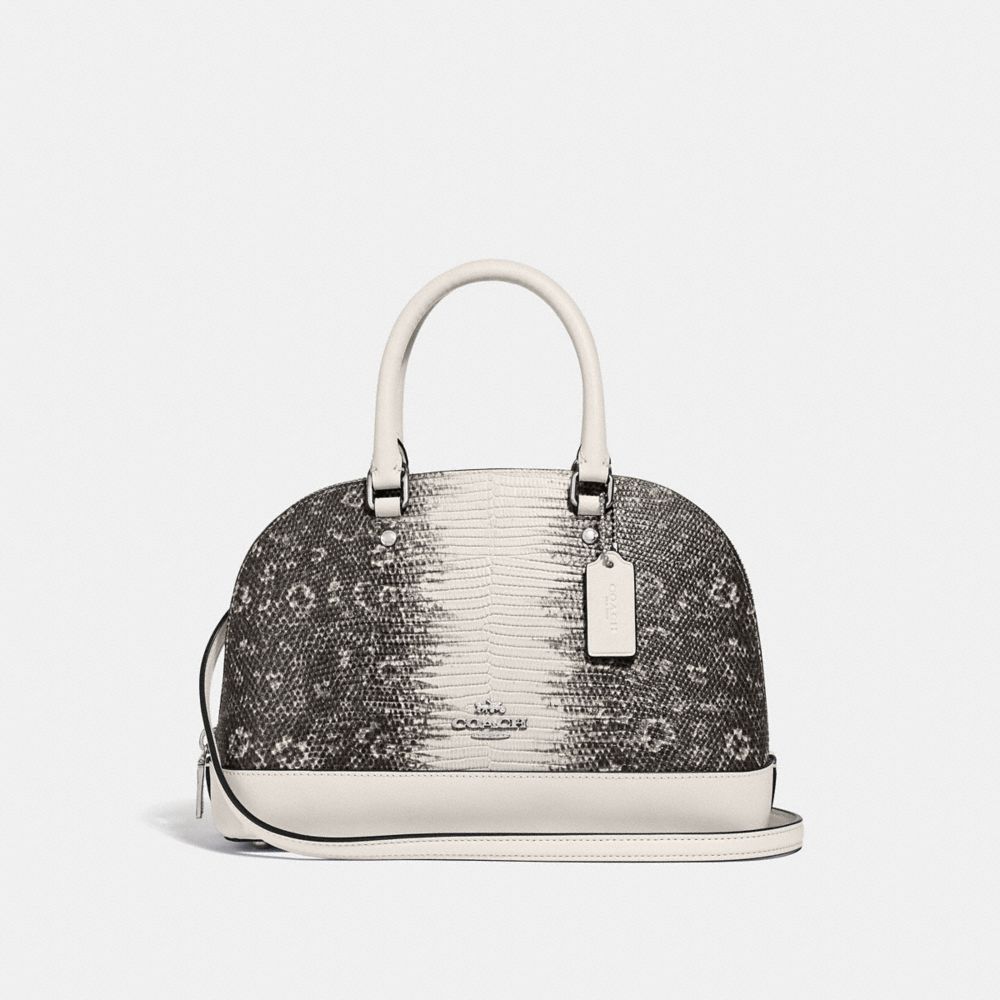 Lizard-embossed leather with smooth leather details| Inside multifunction pockets| Zip closure, fabric lining| Handles with 3 1/2" drop| Outside slip pocket| Detachable strap with 21 1/2" for shoulder or crossbody wear| 10 1/4" (L) x 7" (H) x 4" (W)