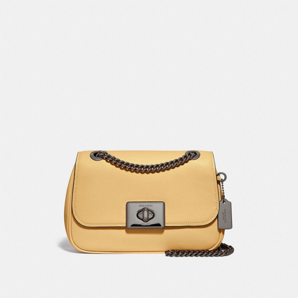 Smooth leather| Inside multifunction pocket| Turnlock closure, fabric lining| Handles convert to shoulder strap with 22 3/4" drop| Outside slip pocket| 7 3/4" (L) x 5 1/4" (H) x 2 3/4" (W)
