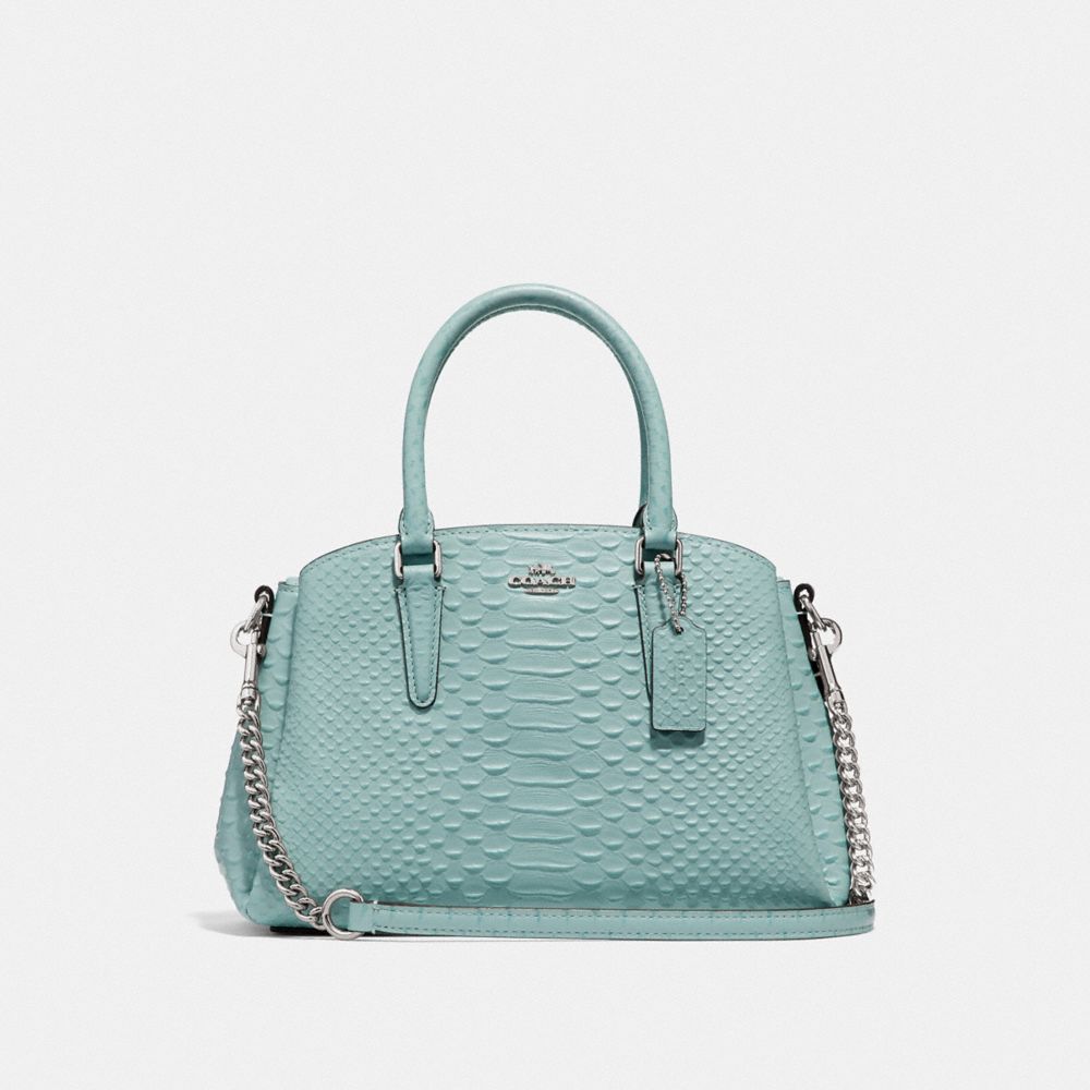 Snake-embossed leather with smooth leather details| Center zip compartment| Snap closure, fabric lining| Handles with 4" drop| Detachable strap with 20" drop for shoulder or crossbody wear| 9 3/4" (L) x 6 3/4" (H) x 4 1/4" (W)