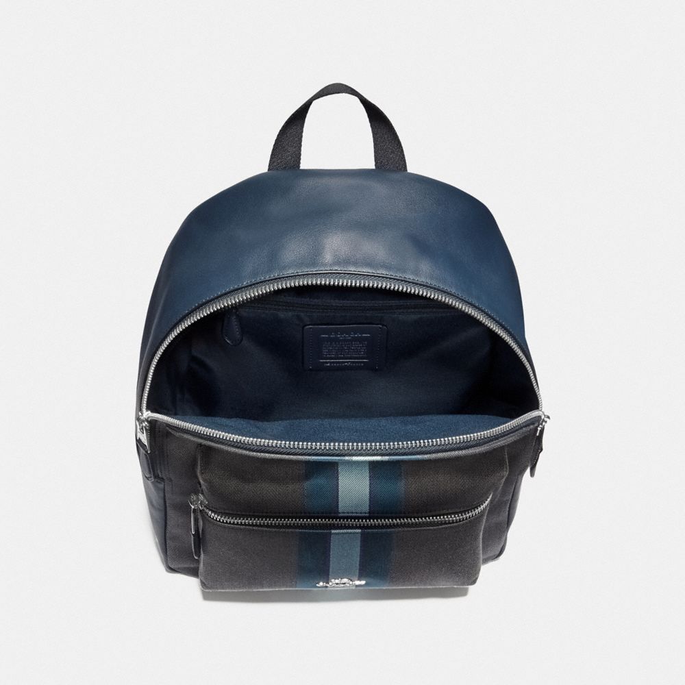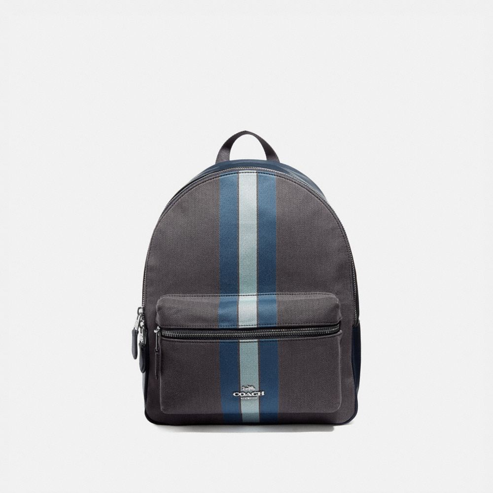 MEDIUM CHARLIE BACKPACK IN SIGNATURE JACQUARD WITH VARSITY STRIPE