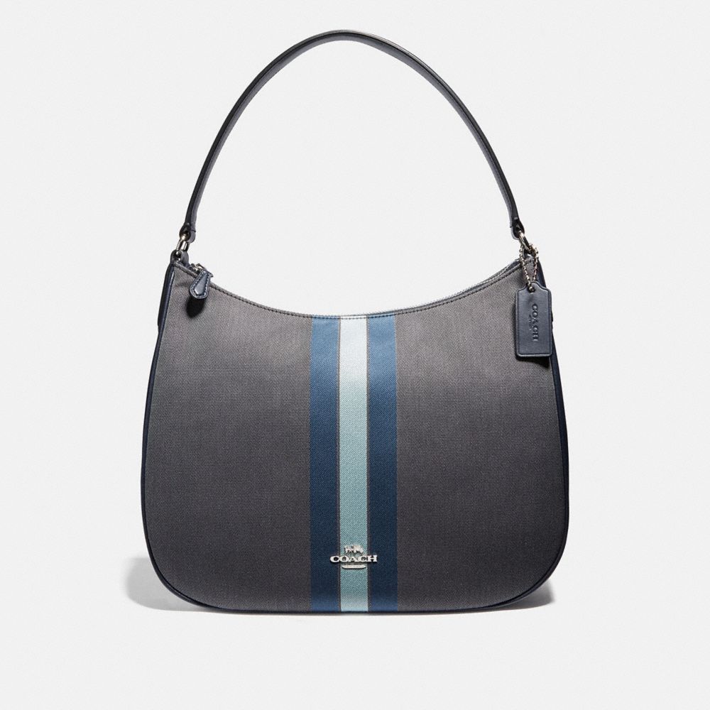 ZIP SHOULDER BAG IN SIGNATURE JACQUARD WITH VARSITY STRIPE