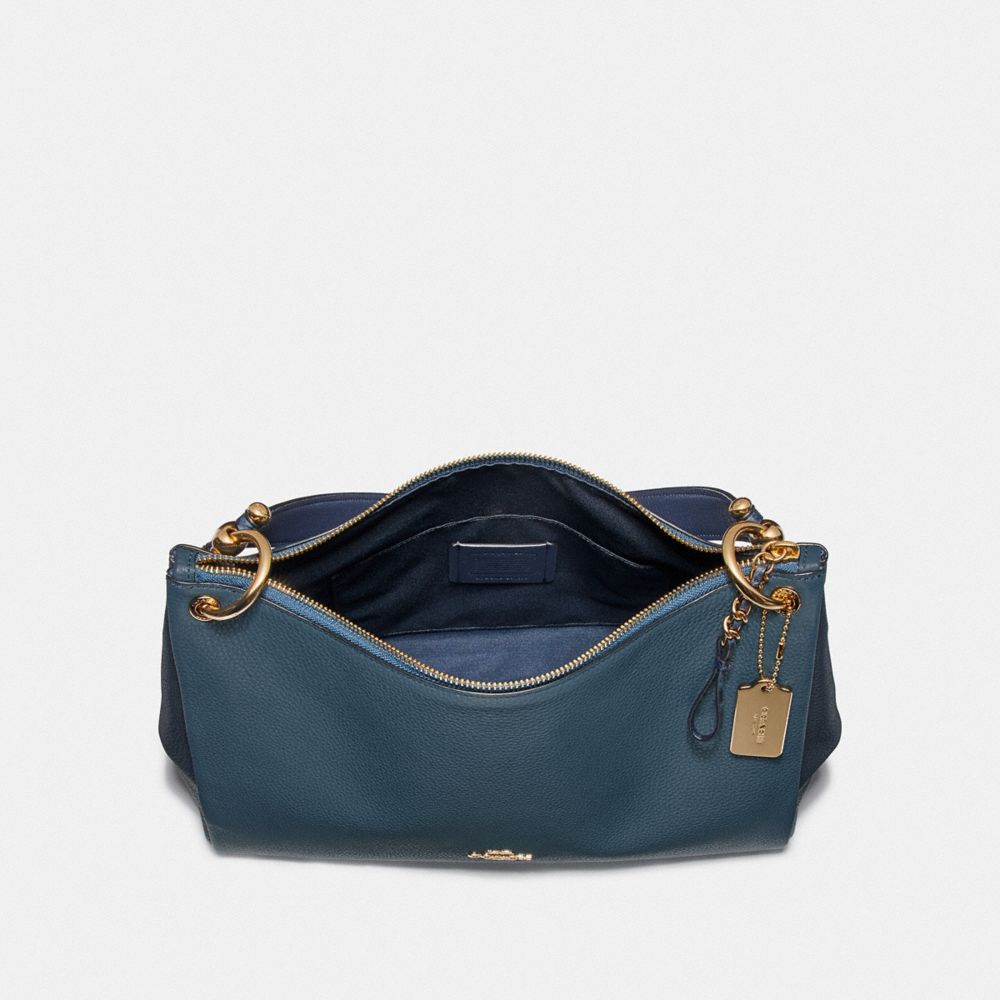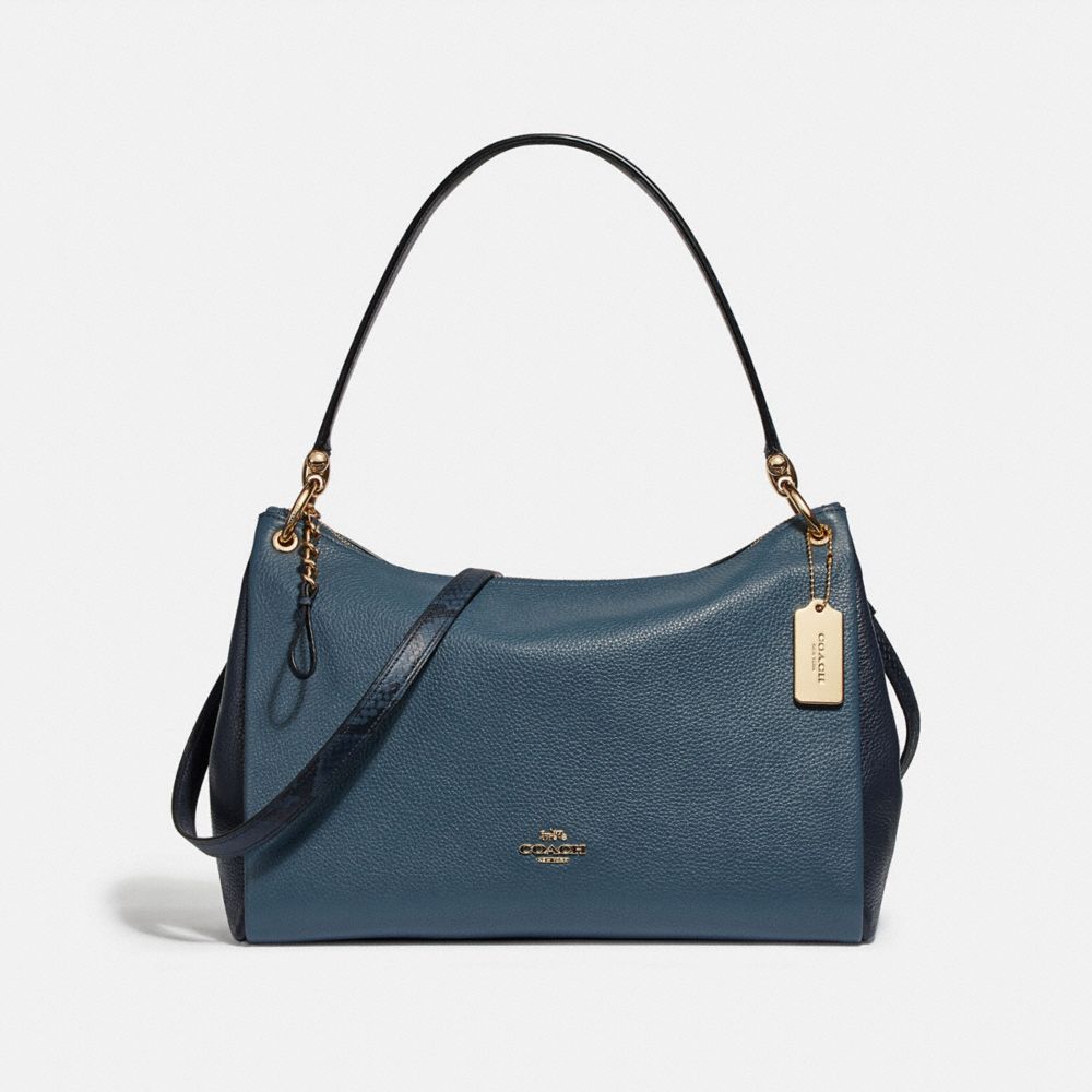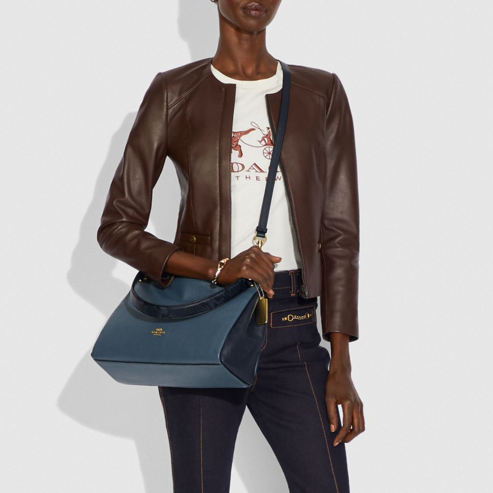 Refined pebble leather with snake-embossed leather details| Inside multifunction pocket| Zip-top closure, fabric lining| Handle with 8 3/4" drop| Detachable strap with 20" drop for shoulder or crossbody wear| 12 3/4" (L) x 8 3/4" (H) x 5 1/4" (W)