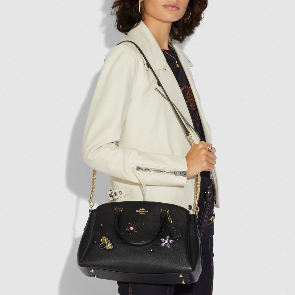 Crossgrain leather| Inside multifunction pocket| Center zip compartment| Snap closure, fabric lining| Handles with 4" drop| Detachable strap with 20" drop for shoulder or crossbody wear| 11 1/2" (L) x 8 3/4" (H) x 5" (W)