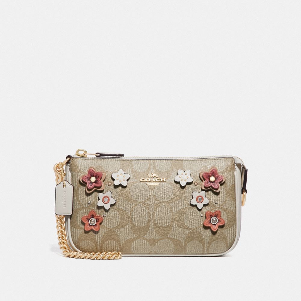 LARGE WRISTLET 19 IN SIGNATURE CANVAS WITH FLORAL APPLIQUE