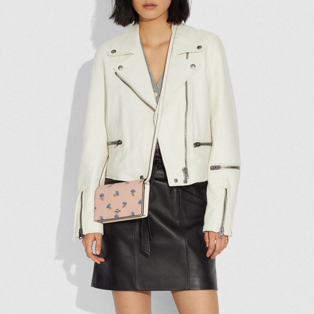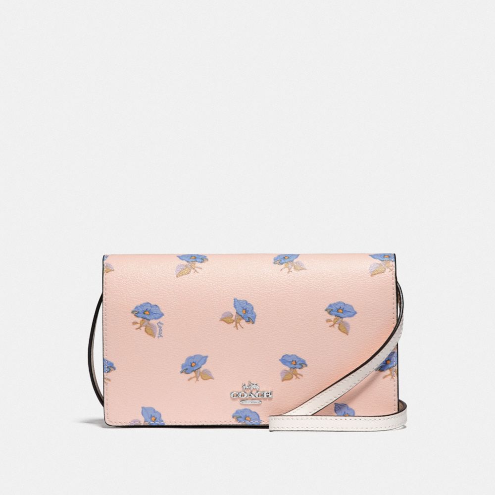 HAYDEN FOLDOVER CROSSBODY CLUTCH WITH BELL FLOWER PRINT