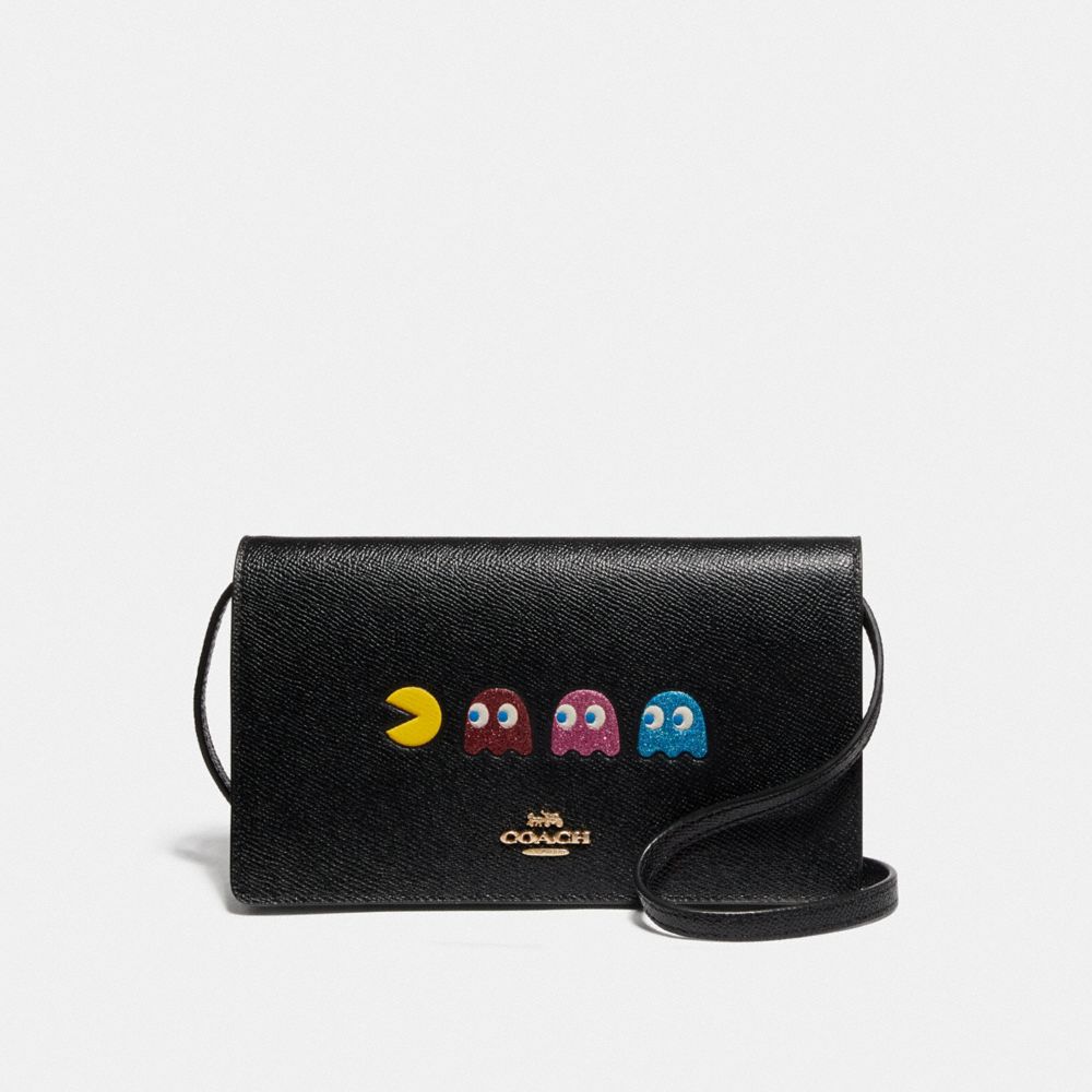 HAYDEN FOLDOVER CROSSBODY CLUTCH WITH PAC-MAN ANIMATION