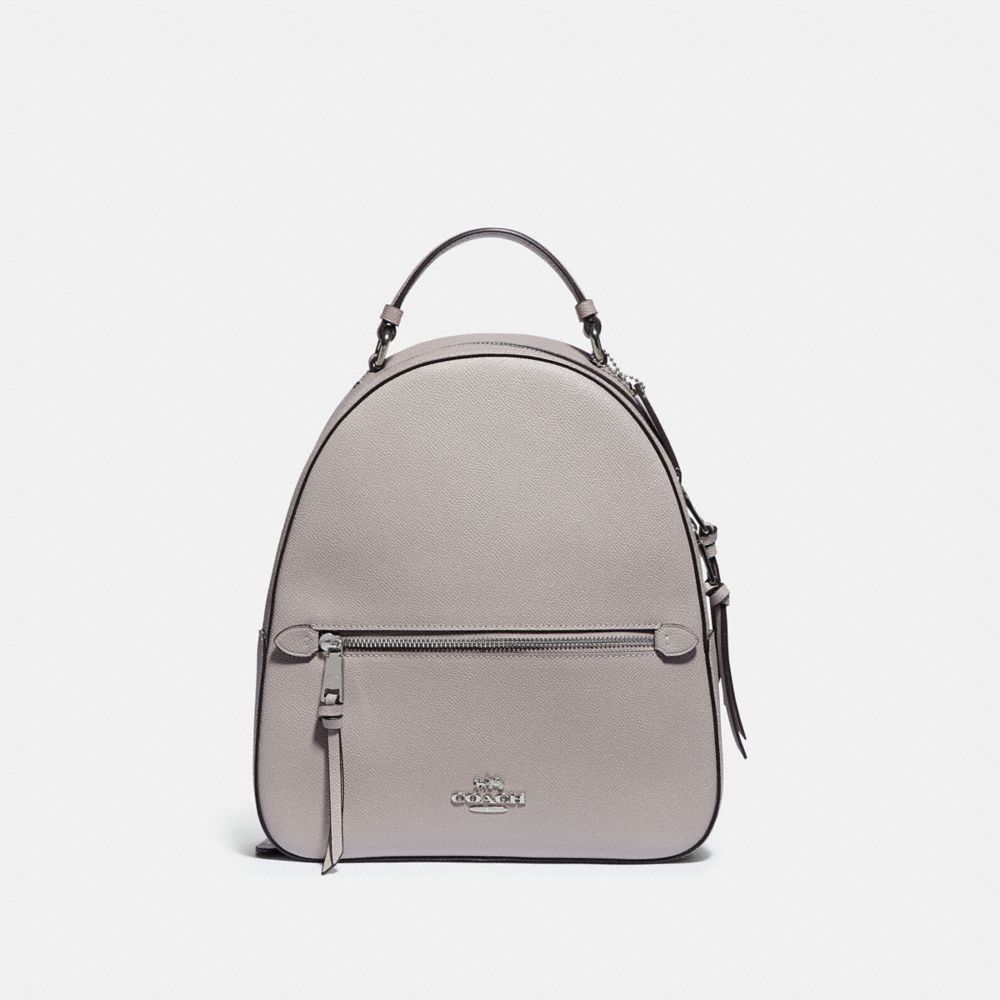 Crossgrain leather| Inside zip pocket| Zip closure, fabric lining| Top handle with 2" drop| Outside zip pocket| Adjustable shoulder straps| 10 1/2" (L) x 12 1/4" (H) x 3 3/4" (W)