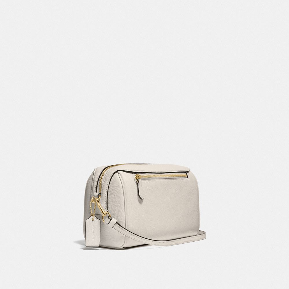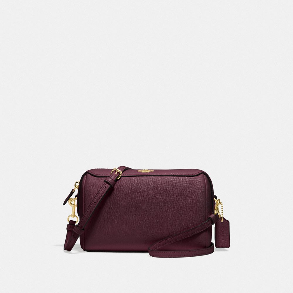 Crossgrain leather| Two credit card slots| Zip closure, fabric lining| Outside zip pocket| Detachable strap with 22 3/4" drop for shoulder or crossbody wear| 7 3/4" (L) x 5 1/4" (H) x 4" (W)