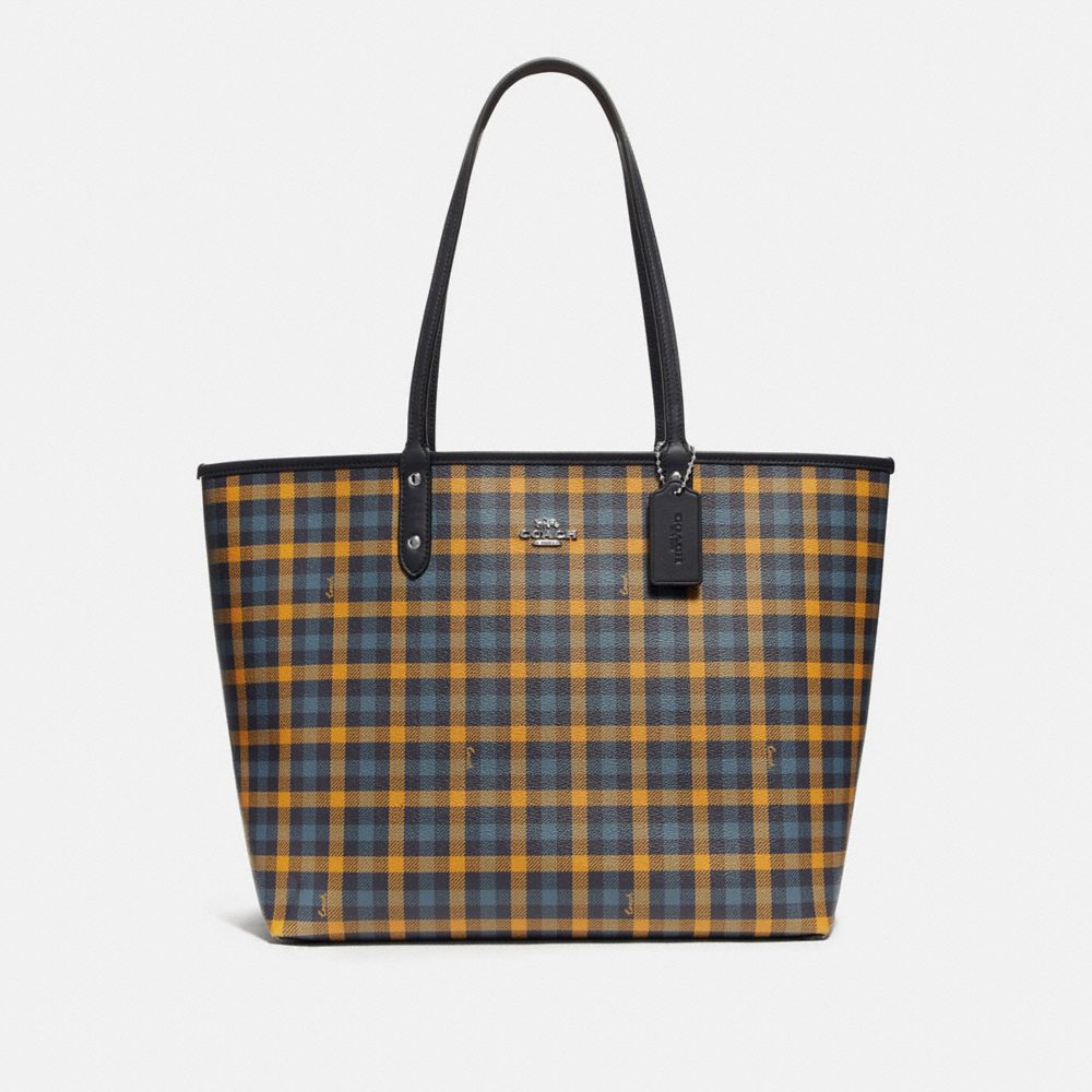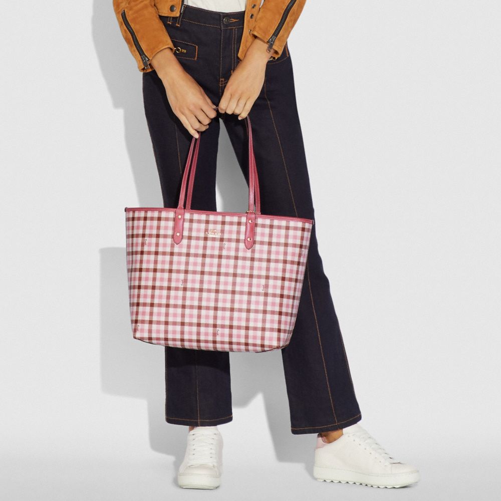 REVERSIBLE CITY TOTE WITH GINGHAM PRINT
