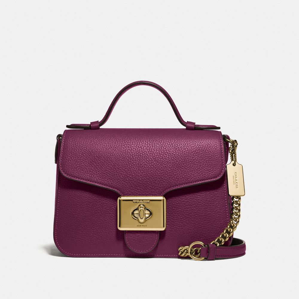 Refined pebble leather| Inside multifunction pockets| Turnlock closure, fabric lining| Handle with 2" drop| Outside slip pocket| Detachable strap with 21 3/4" drop for shoulder or crossbody wear| 9" (L) x 6 1/4" (H) x 3 1/4" (W)