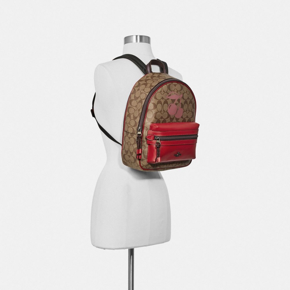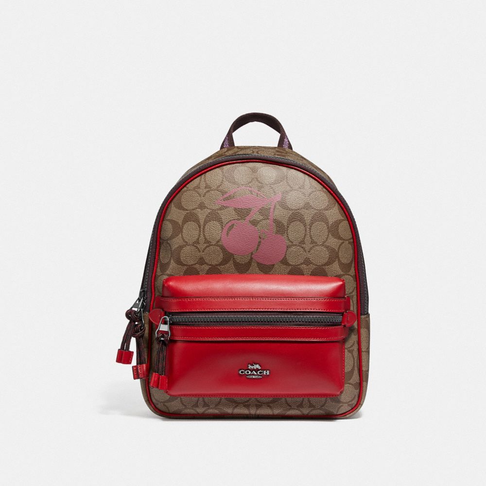 MEDIUM CHARLIE BACKPACK IN SIGNATURE CANVAS WITH CHERRY MOTIF