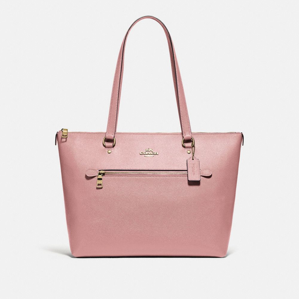 Crossgrain leather| Inside zip, cell phone and multifunction pockets| Zip-top closure, fabric lining| Handles with 10" drop| Outside zip pocket| 11 3/4" (L) x 10 1/2" (H) x 5 1/2" (W)