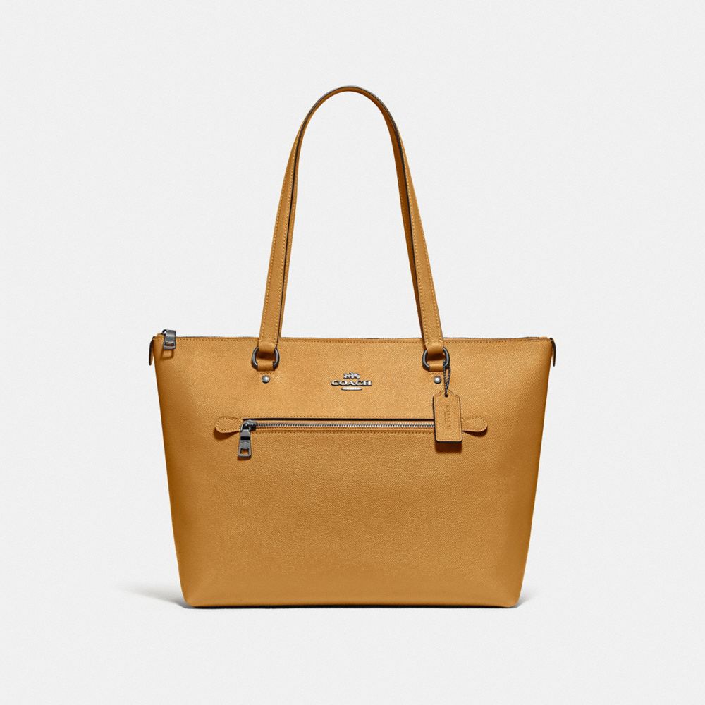 Crossgrain leather| Inside zip, cell phone and multifunction pockets| Zip-top closure, fabric lining| Handles with 10 1/4" drop| Outside zip pocket| 12 3/4" (L) x 10 1/2" (H) x 5 1/2" (W)