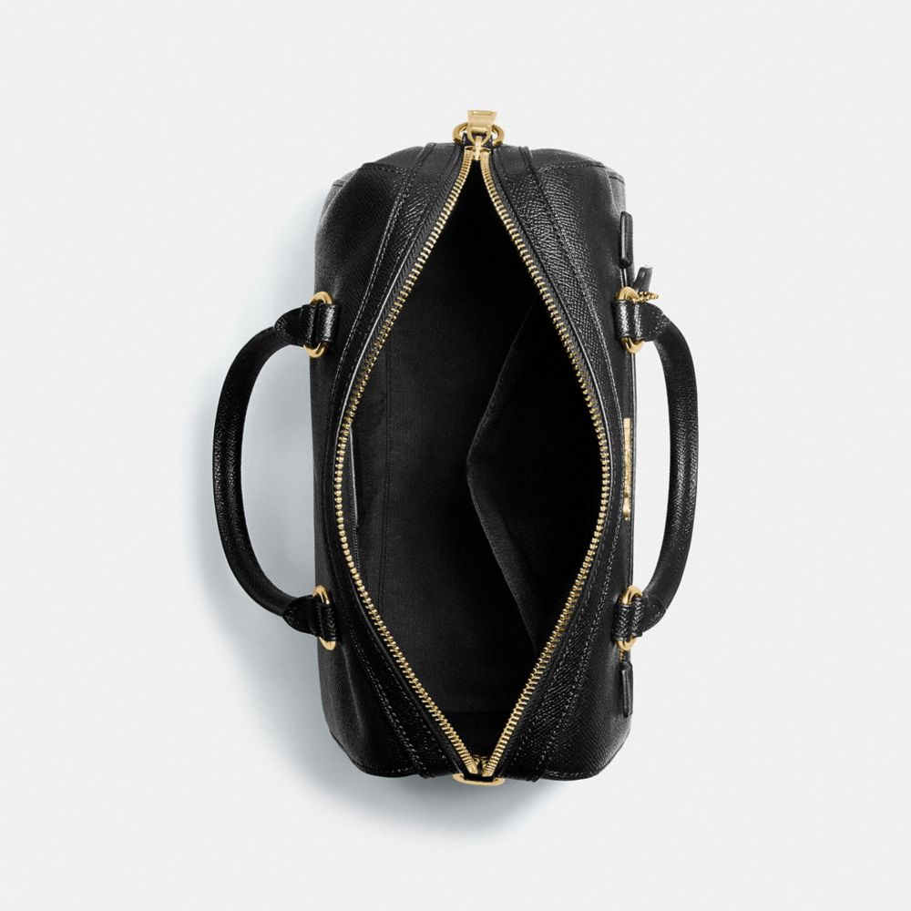 Crossgrain leather| Inside zip and multifunction pockets| Zip closure, fabric lining| Handles with 4 1/4" drop| Outside zip pocket| Detachable strap with 23" drop for shoulder or crossbody wear| 10 1/2" (L) x 6 1/4" (H) x 5 1/2" (W)