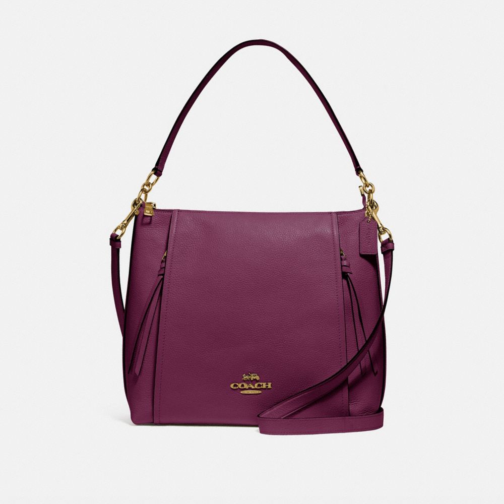 Refined pebble leather| Inside zip pocket| Zip-top closure, fabric lining| Handle with 9" drop| Outside zip pockets| Detachable strap with 20" drop for shoulder or crossbody wear| 12 3/4" (L) x 11 1/4" (H) x 4 1/2" (W)