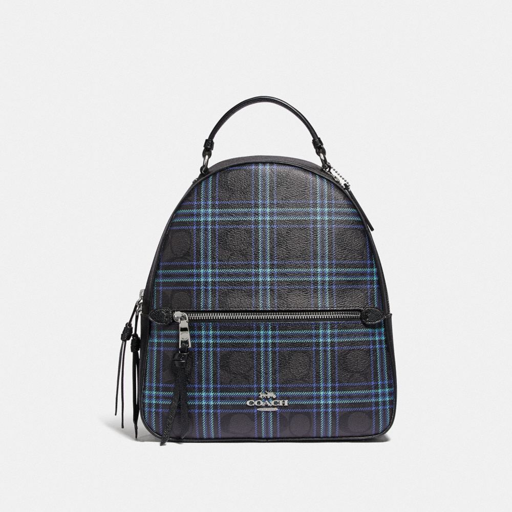 JORDYN BACKPACK IN SIGNATURE CANVAS WITH SHIRTING PLAID PRINT