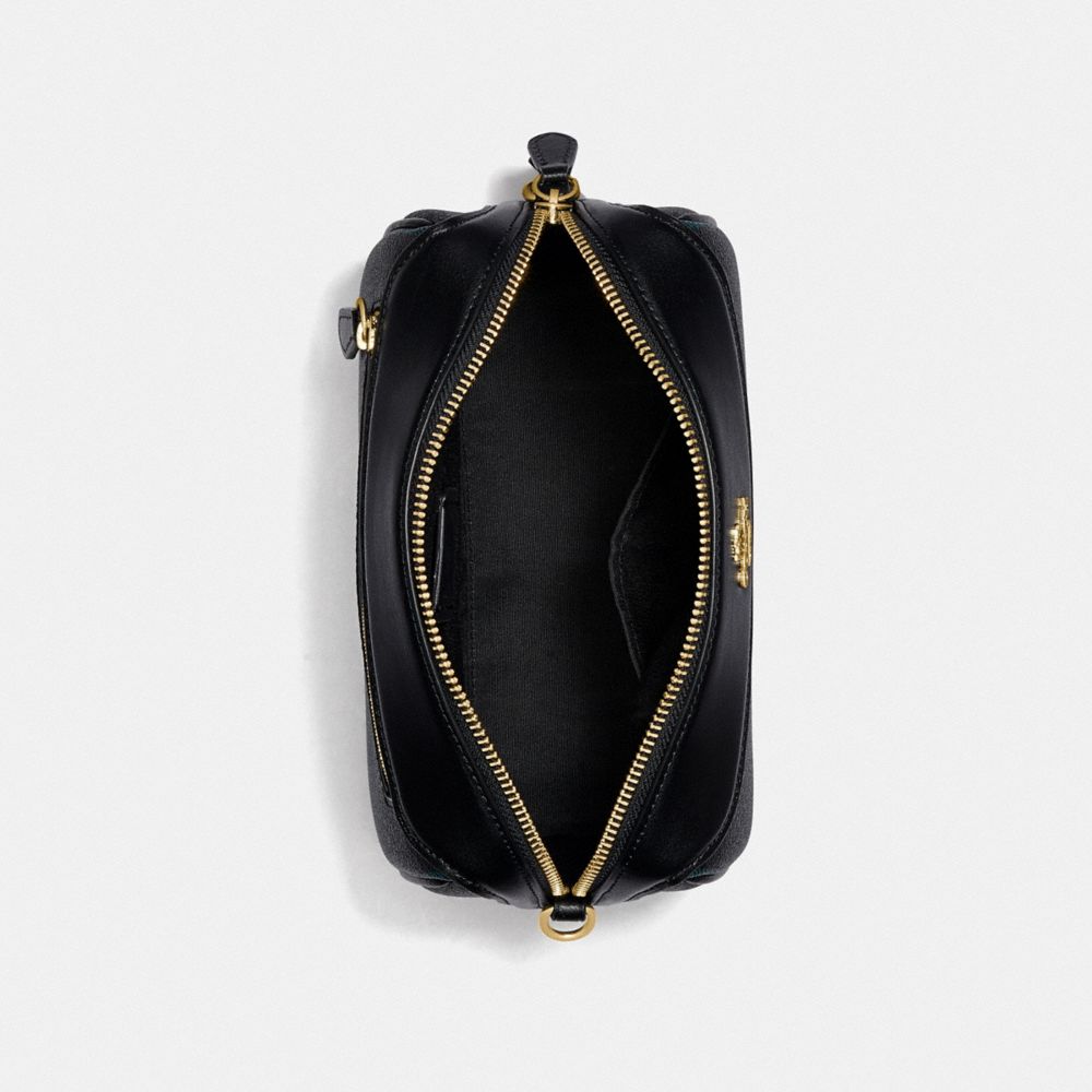 Signature coated canvas with smooth leather details| Two credit card slots| Zip closure, fabric lining| Outside zip pocket| Detachable strap with 22 3/4" drop for shoulder or crossbody wear| 7 3/4" (L) x 5 1/4" (H) x 4" (W)