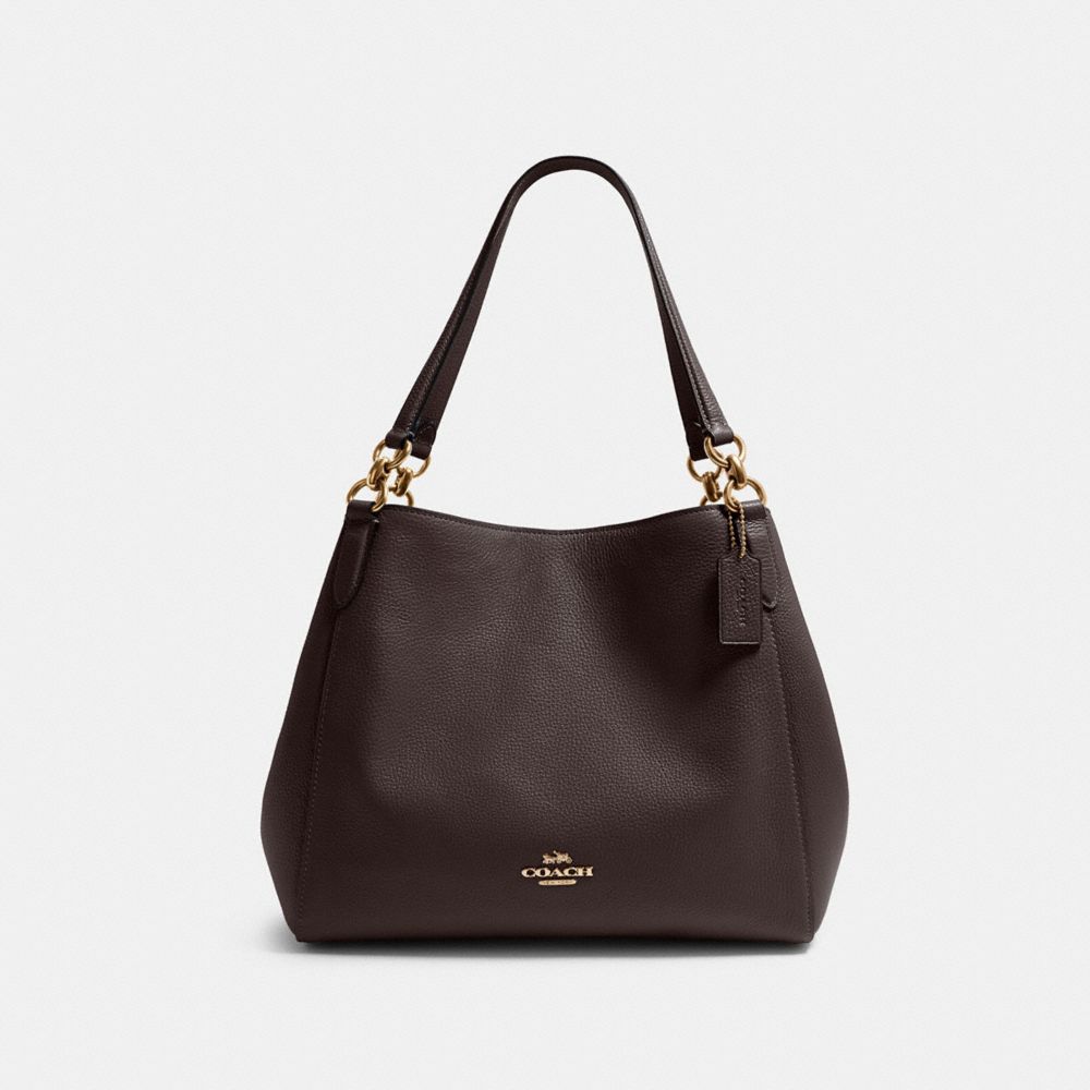 Refined pebble leather| Inside zip, cell phone and multifunction pockets| Center zip compartment| Snap closure, fabric lining| Handles with 9 1/2" drop| 12 1/2" (L) x 9 3/4" (H) x 3 3/4" (W)