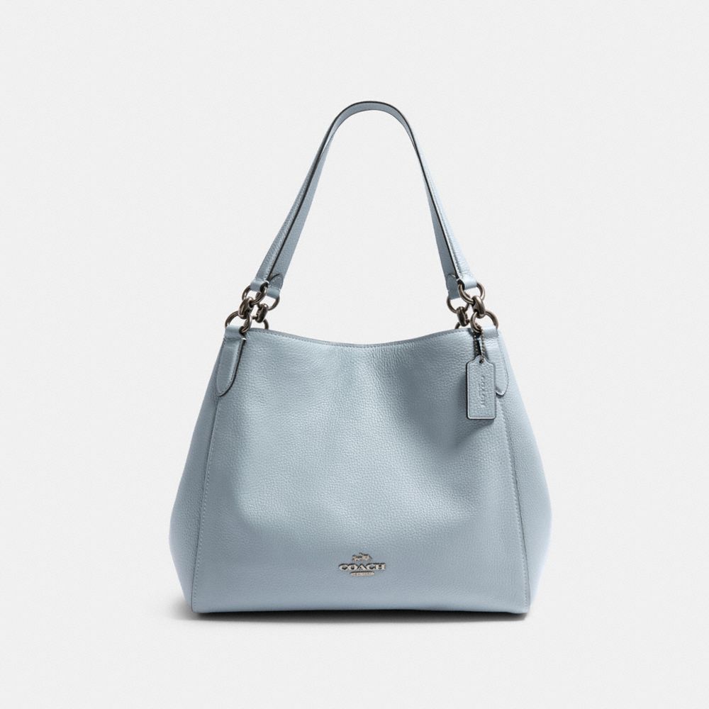 Refined pebble leather| Inside zip, cell phone and multifunction pockets| Center zip compartment| Snap closure, fabric lining| Handles with 9 1/2" drop| 12 1/2" (L) x 9 3/4" (H) x 3 3/4" (W)