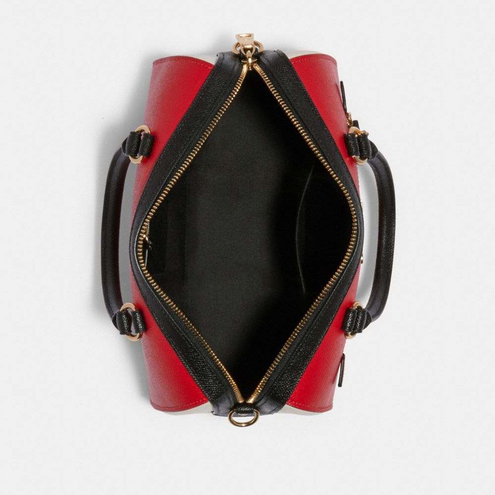 Crossgrain leather| Inside zip and multifunction pockets| Zip closure, fabric lining| Handles with 4 1/4" drop| Outside zip pocket| Detachable strap with 23" drop for shoulder or crossbody wear| 10 1/2" (L) x 6 1/4" (H) x 5 1/2" (W)