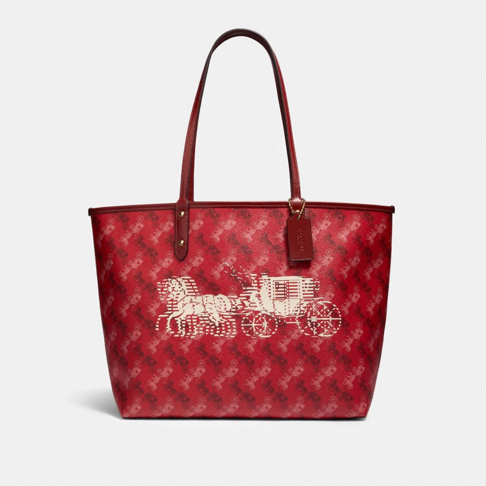 REVERSIBLE CITY TOTE WITH HORSE AND CARRIAGE PRINT