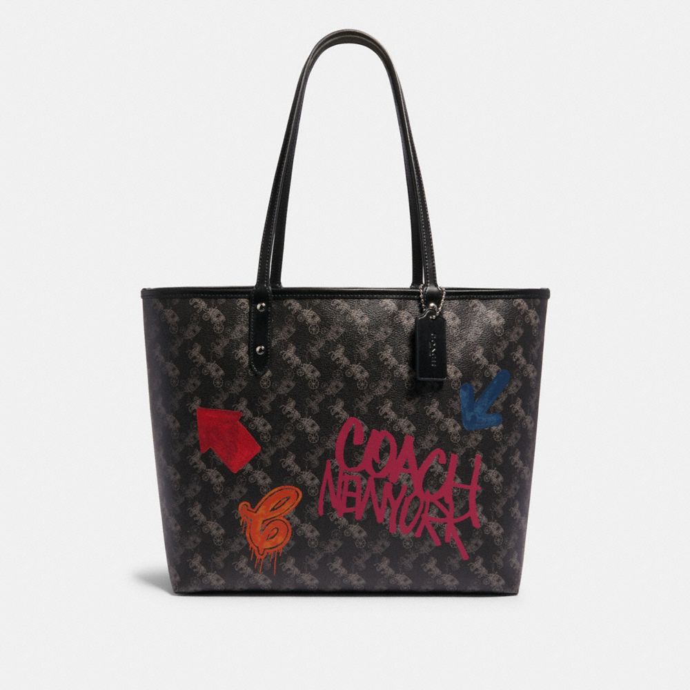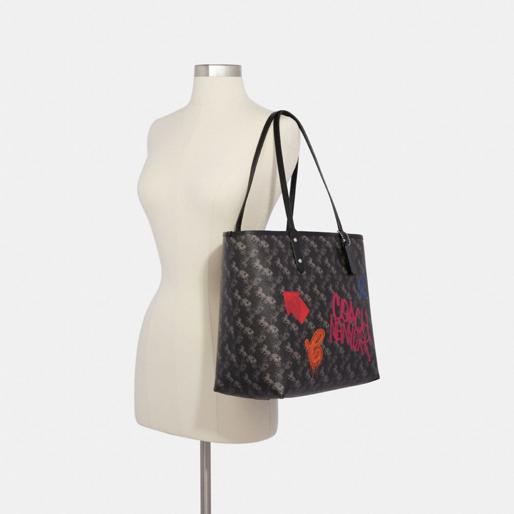 REVERSIBLE CITY TOTE WITH HORSE AND CARRIAGE PRINT