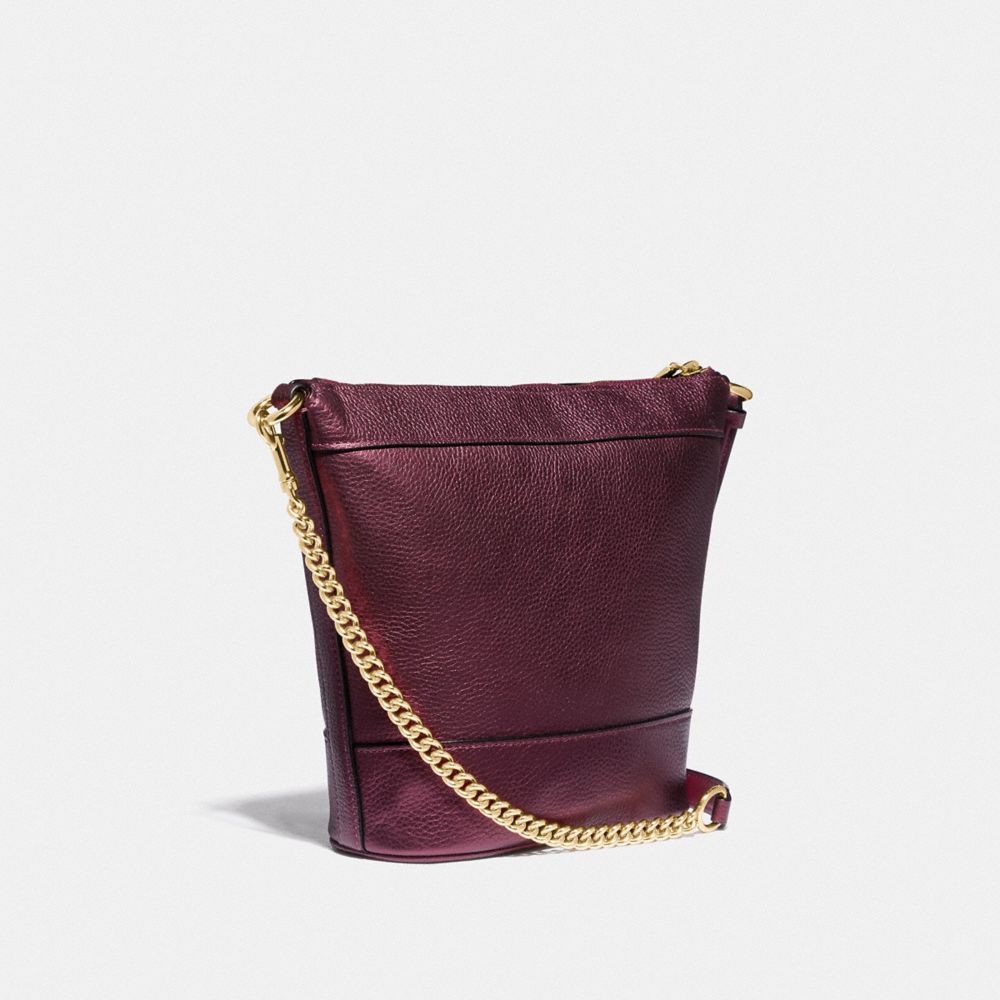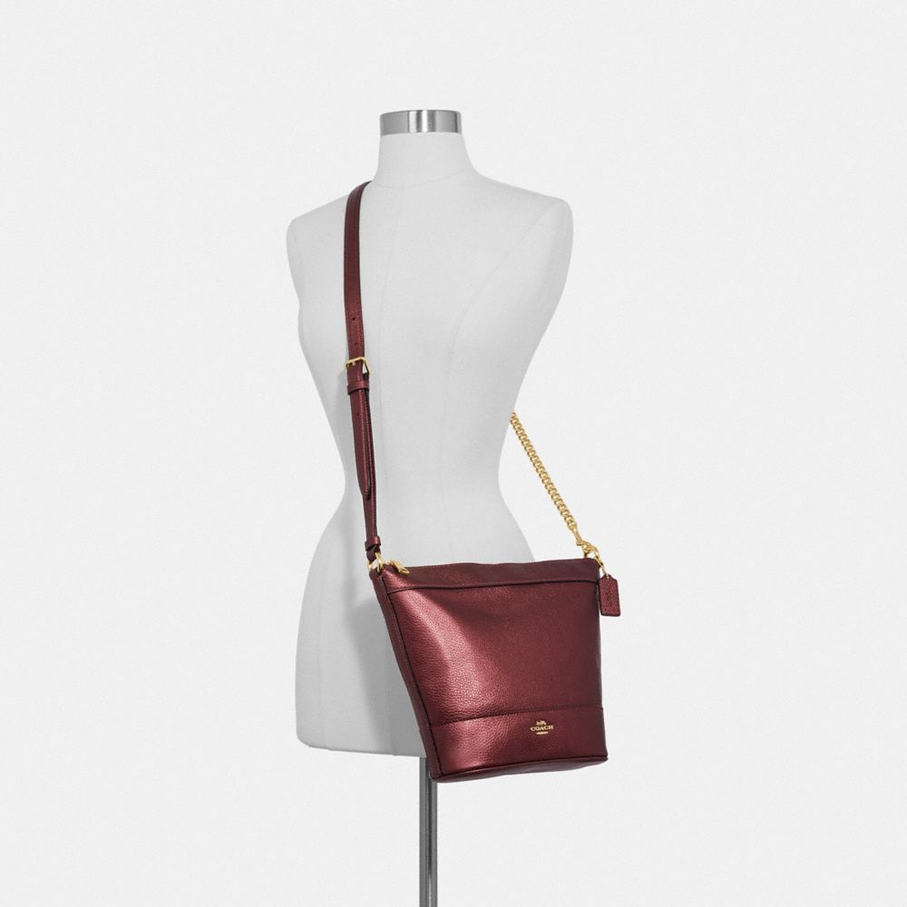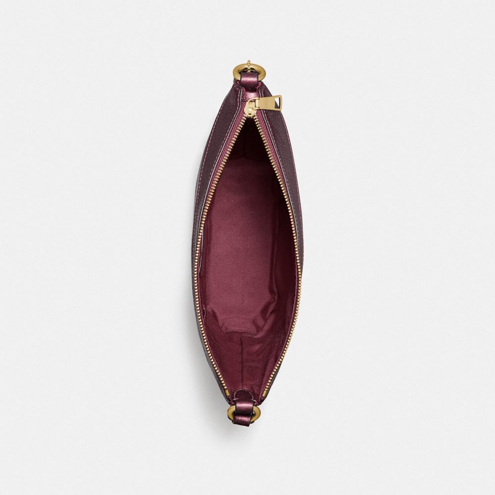 Metallic refined pebble leather| Inside multifunction pocket| Zip-top closure, fabric lining| Convertible strap with 20 1/4" drop for shoulder or crossbody wear| 8 1/2" (L) x 9 1/4" (H) x 3 1/2" (W)