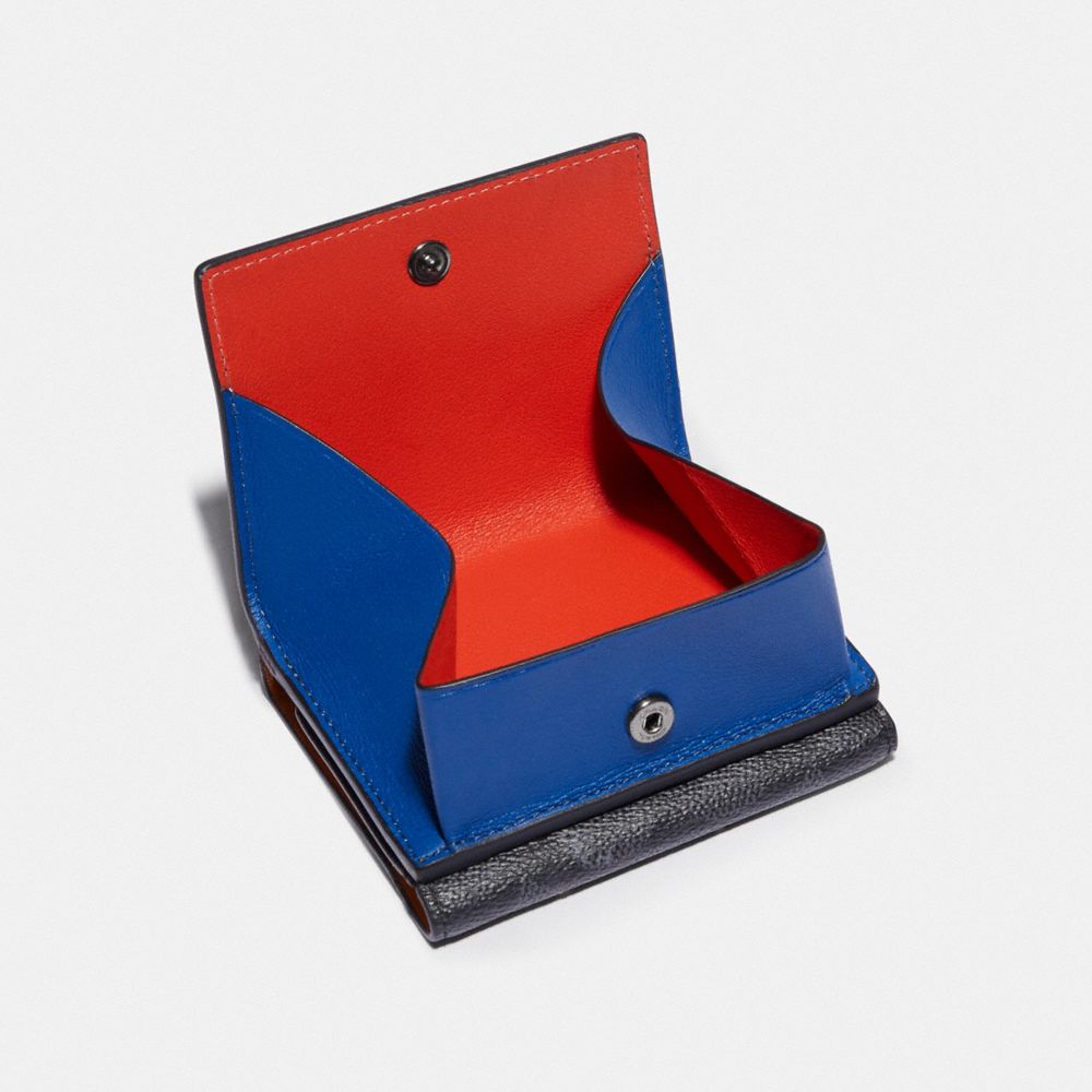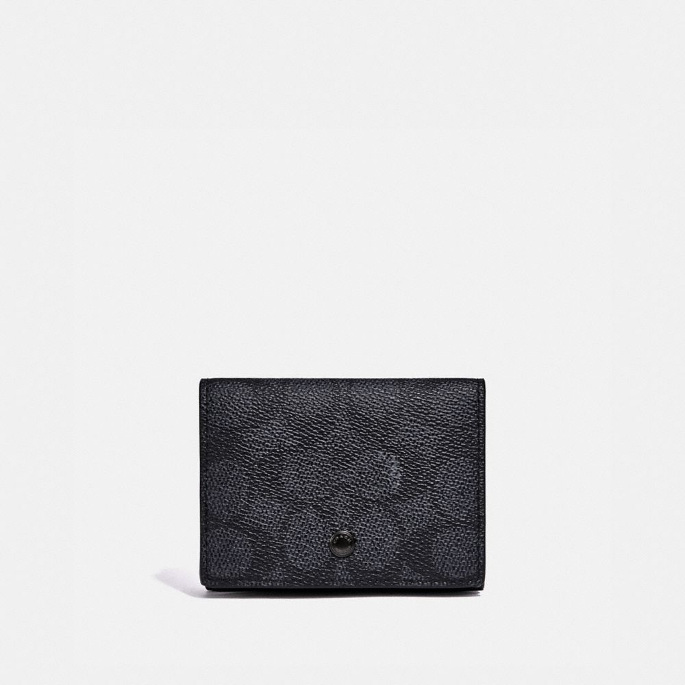 Signature coated canvas and smooth leather| Three credit card slots| Full-length bill compartment| Snap closure| Snap coin pocket| 4" (L) x 2 3/4" (H)Style No. 3895