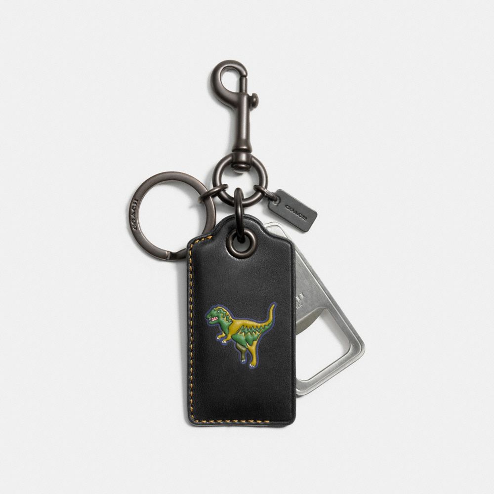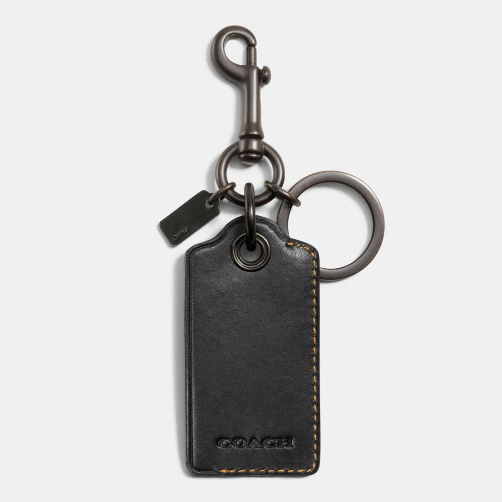 Glovetanned leather Plated metal 1 1/4" attached split key ring and carabiner clip Coach 1941 collection