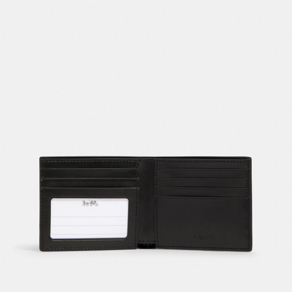 Printed coated canvas| Six credit card slots| Full-length bill compartment| ID window| 4" (L) x 3" (H) x 1/2" (W)