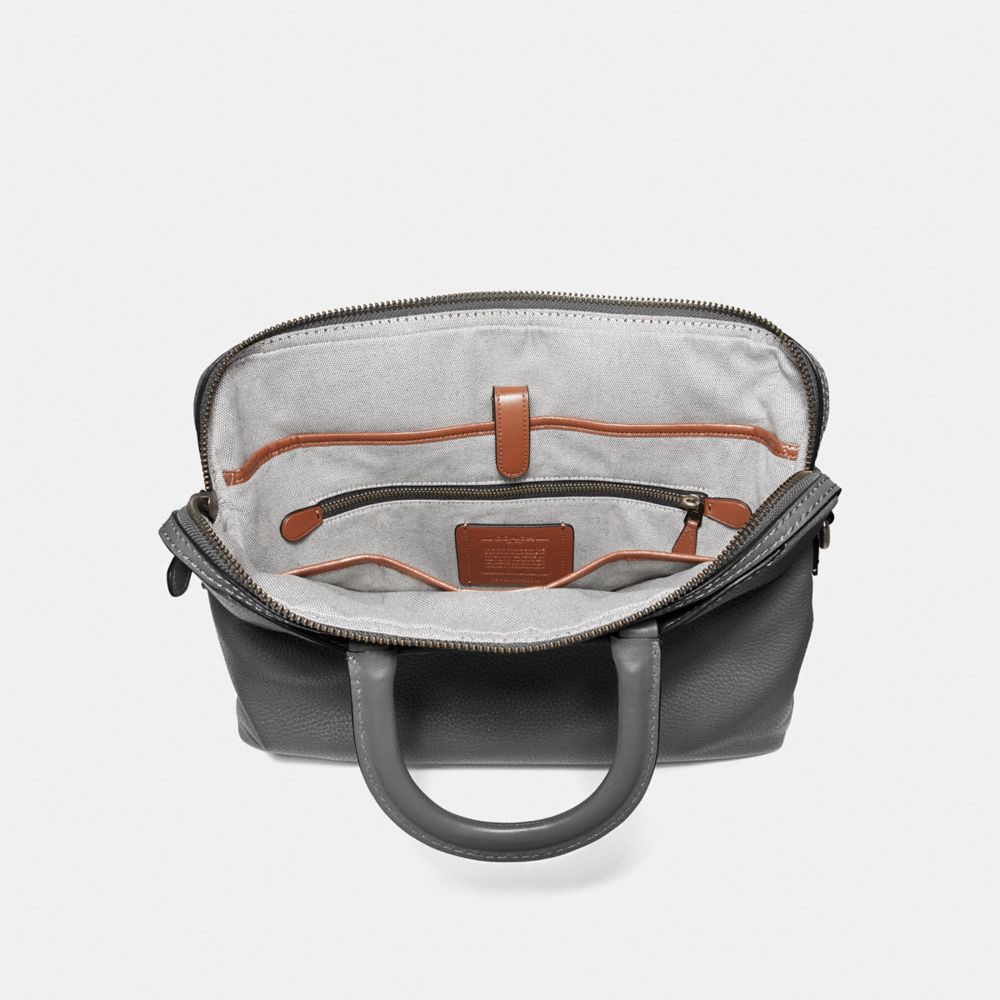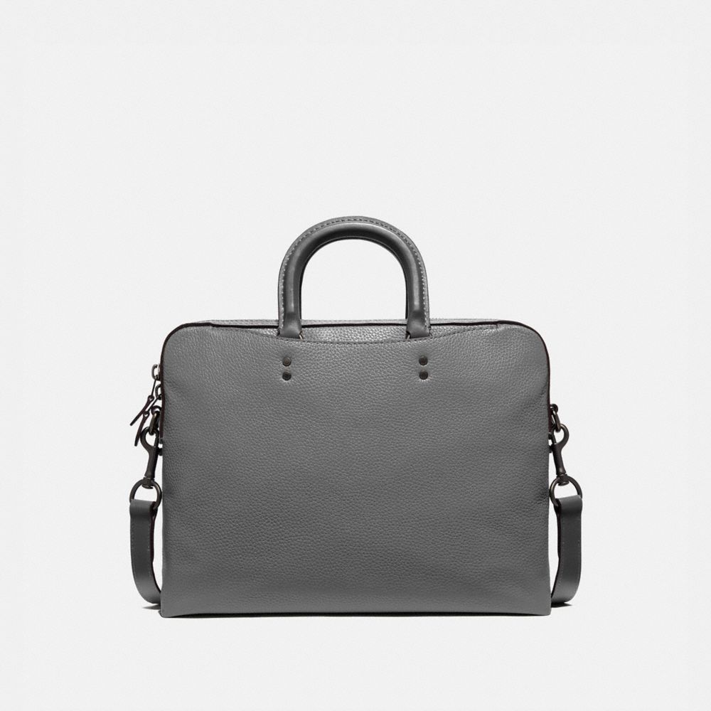 Natural pebble leather | Inside zip, cell phone and multifunction pockets| Inside sleeve with secure tab|Two-way zip closure, fabric lining| Side slip pockets| Handles with 3 1/4" drop| Detachable strap with 25" drop for shoulder or crossbody wear| Fits a 13" laptop| 14 1/2" (L) x 11" (H) x 1 1/2" (W)