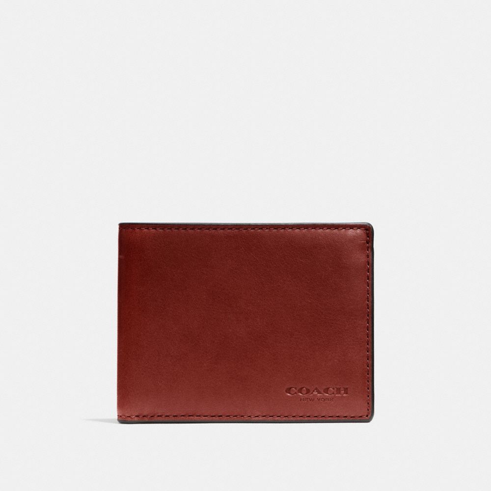 Sport calf leather| Three credit card slots| Full-length bill compartment| ID window| 4" (L) x 3" (H) x 1/2" (W)Style No. 74900