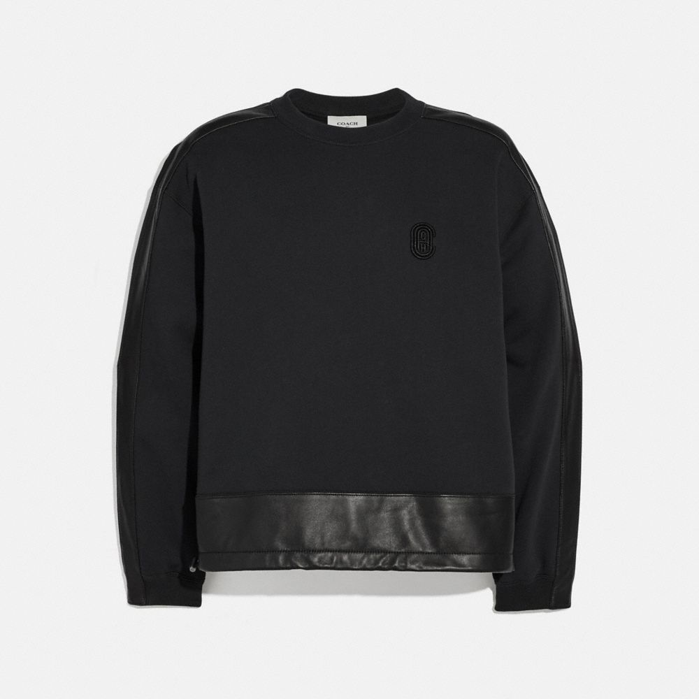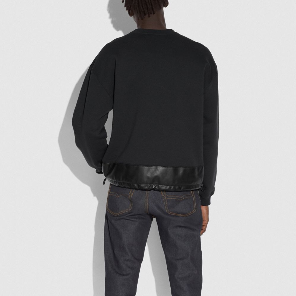 LEATHER TRIM SWEATSHIRT
