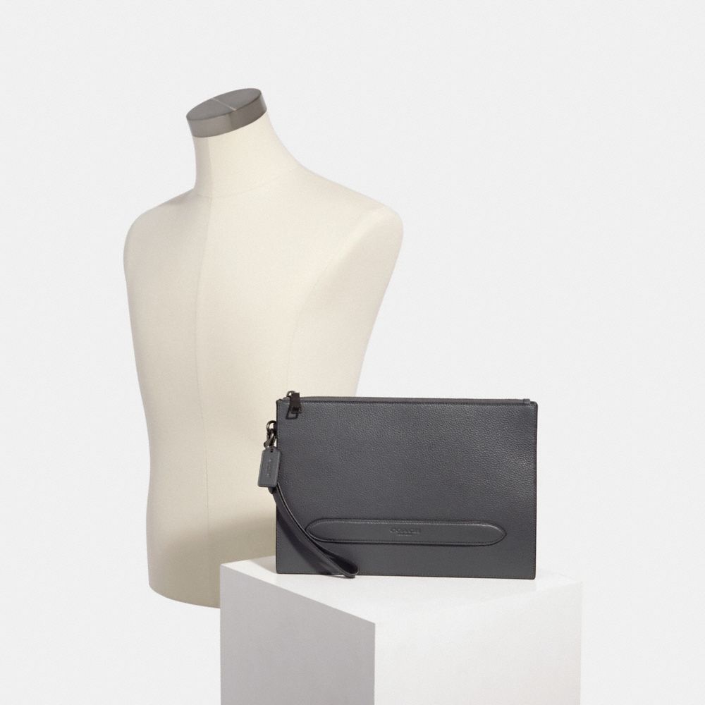 Natural pebble leather| Inside multifunction pocket| Zip-top closure, fabric lining| Outside zip pocket| Slip handle for clutch function| Detachable wrist strap| 11 3/4" (L) x 8" (H) x 2" (W)