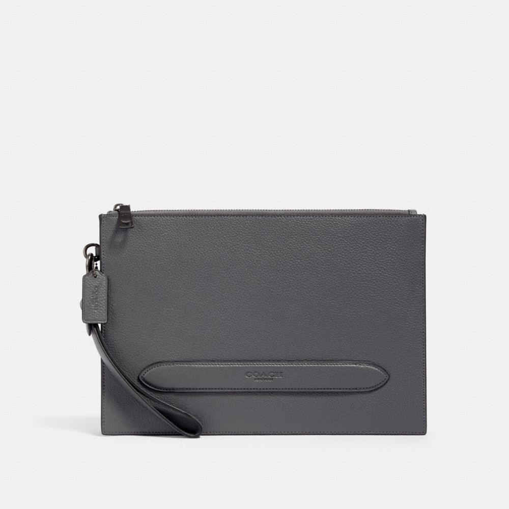 Natural pebble leather| Inside multifunction pocket| Zip-top closure, fabric lining| Outside zip pocket| Slip handle for clutch function| Detachable wrist strap| 11 3/4" (L) x 8" (H) x 2" (W)