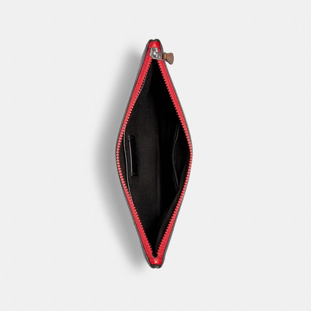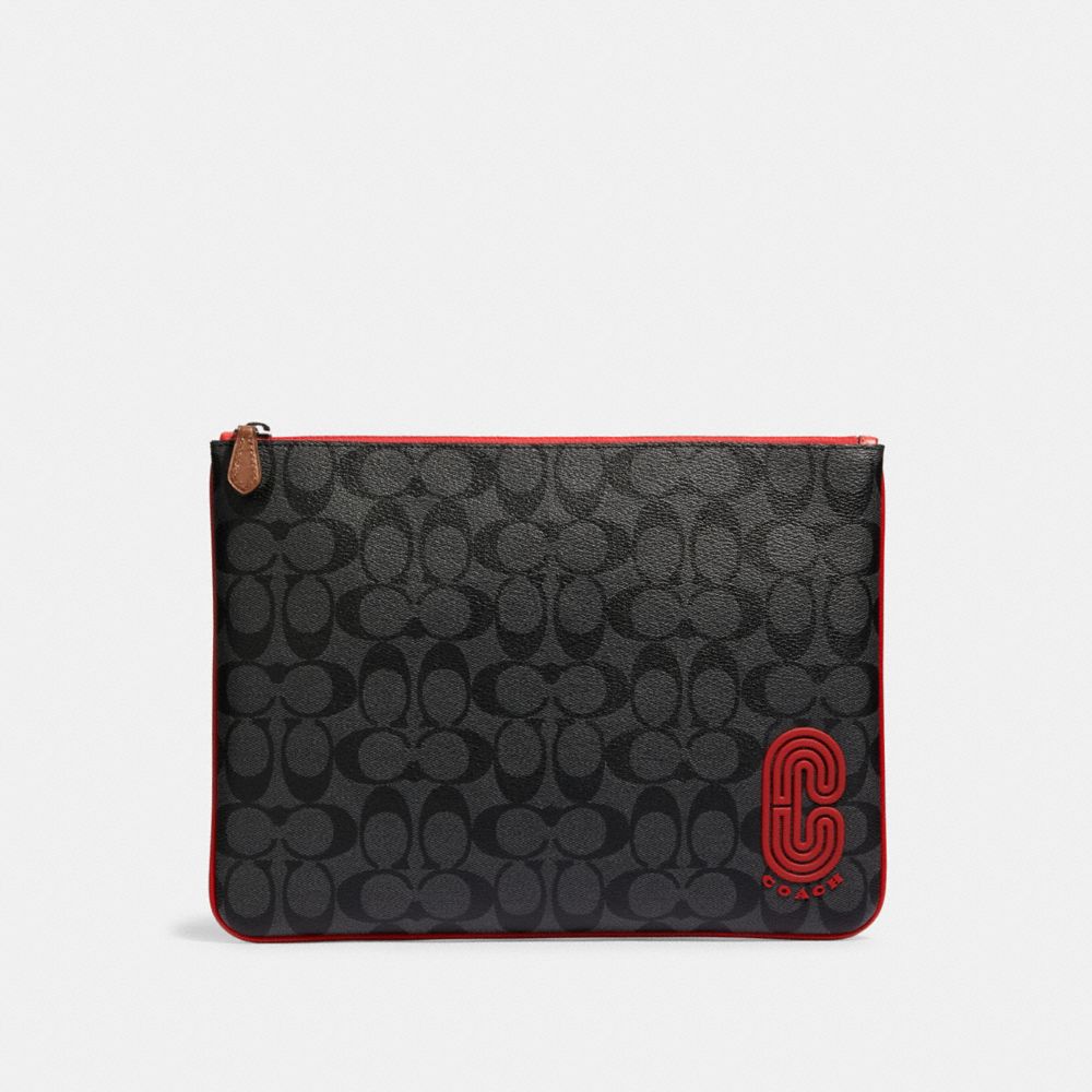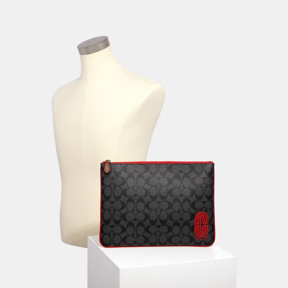 LARGE POUCH IN SIGNATURE CANVAS WITH COACH PATCH