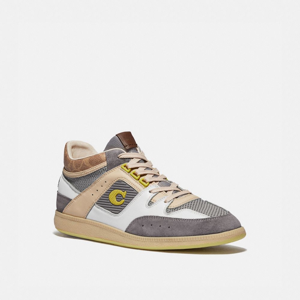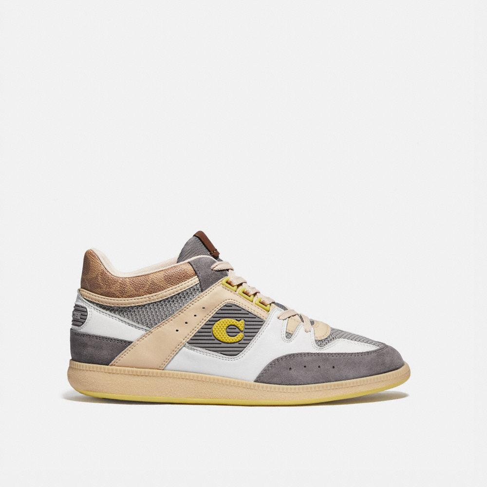 Leather, suede, fabric and Signature coated canvas upper| Fabric lining and footbed| Rubber outsole| Lace-up closure