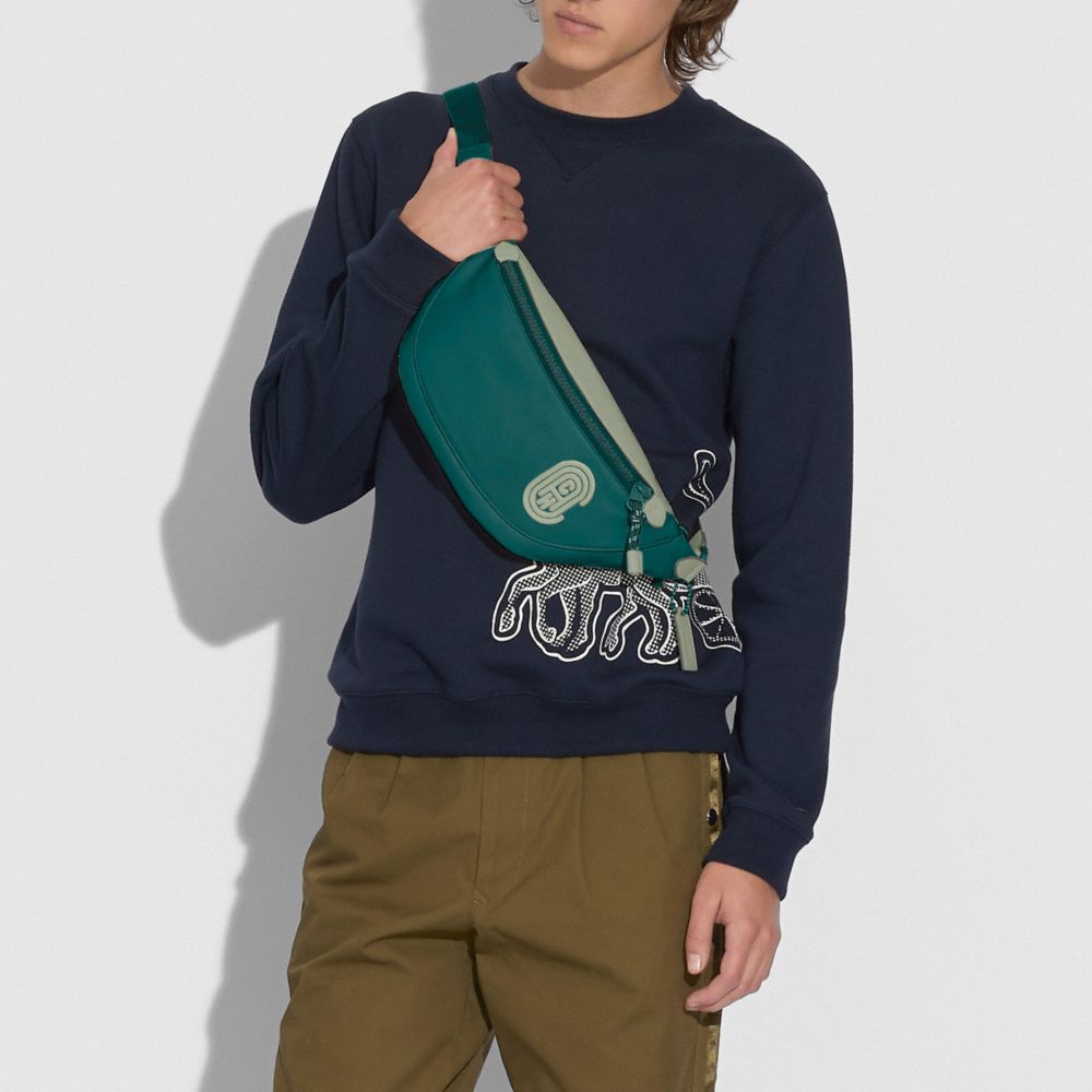Refined calf leather| Inside multifunction pocket| Zip closure, fabric lining| Outside zip pocket| Adjustable strap with speedclip for wear at waist| 16" (L) x 6 1/4" (H) x 2 3/4" (W)Style No. C0922