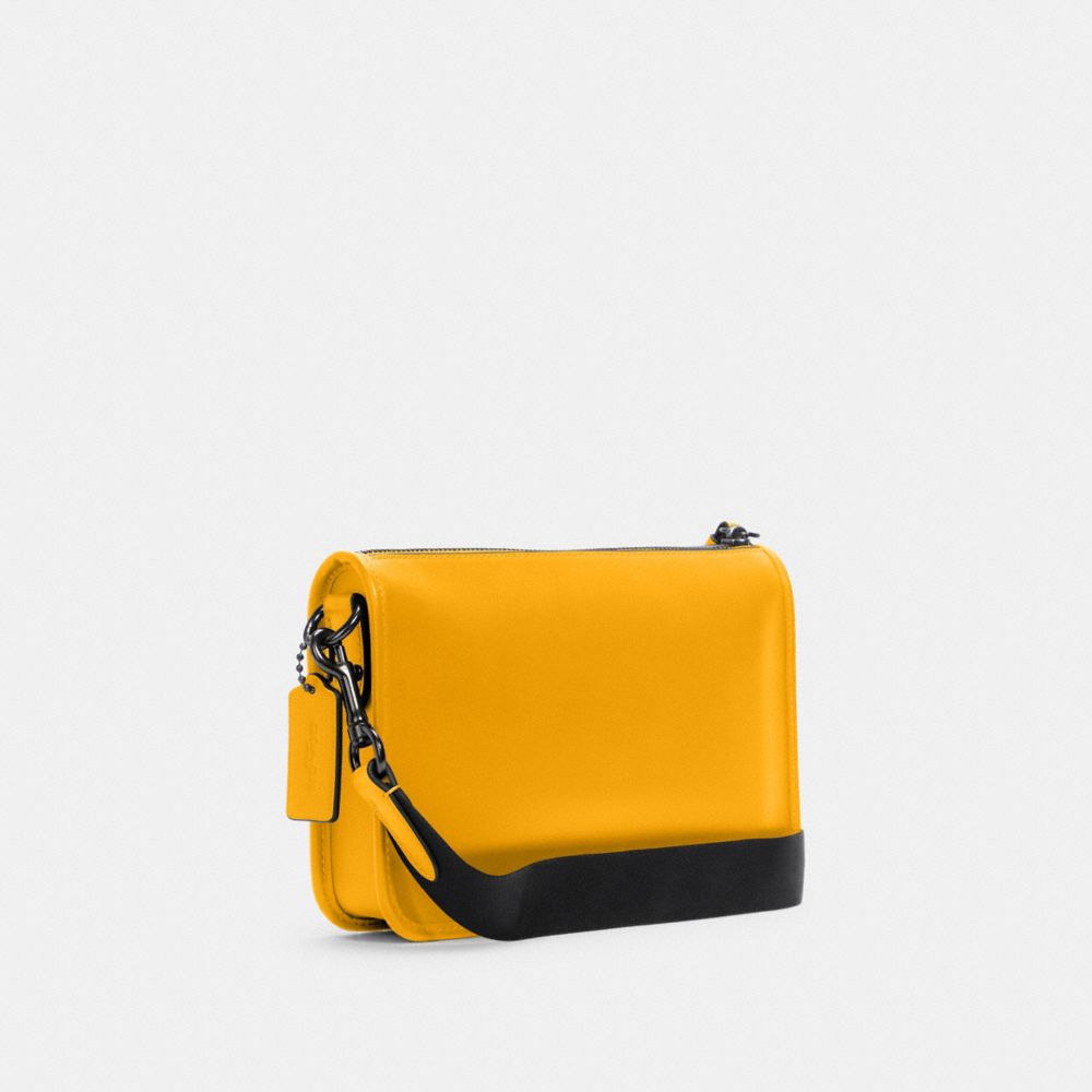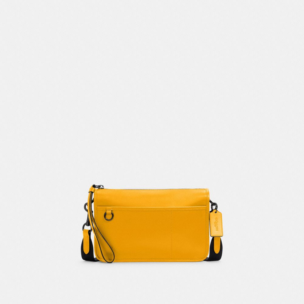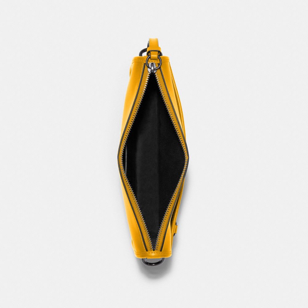 Refined calf leather| Zip-top closure, fabric lining| Outside open pocket| Attached wrist strap| Detachable strap with 22" drop for shoulder or crossbody wear| 9 3/4" (L) x 6 1/4" (H) x 2" (W)