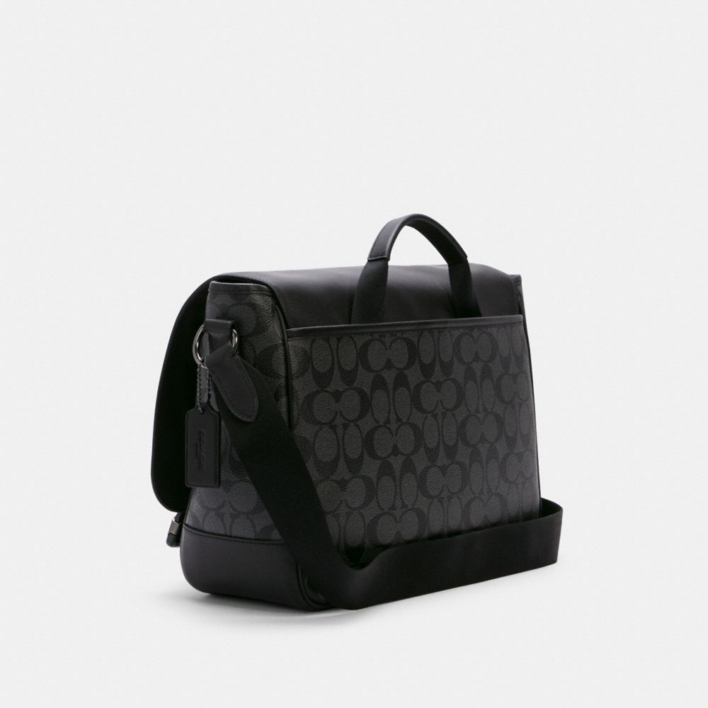 Signature coated canvas and smooth calf leather| Inside zip, cell phone and multifunction pockets| Inside tech sleeve| Speedclip closure, fabric lining| Handle with 3" drop| Outside zip and magnetic snap pockets| Adjustable strap with 25" drop for shoulder or crossbody wear| 13" (L) x 9" (H) x 4 1/4" (W)