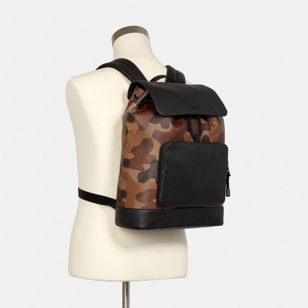 Printed coated canvas, pebble leather and refined calf leather| Inside zip, cell phone and multifunction pockets| Drawstring and speedclip closures, fabric lining| Top handle with 2 1/4" drop| Outside zip pocket| Adjustable shoulder straps| 11 3/4" (L) x 15" (H) x 5" (W)