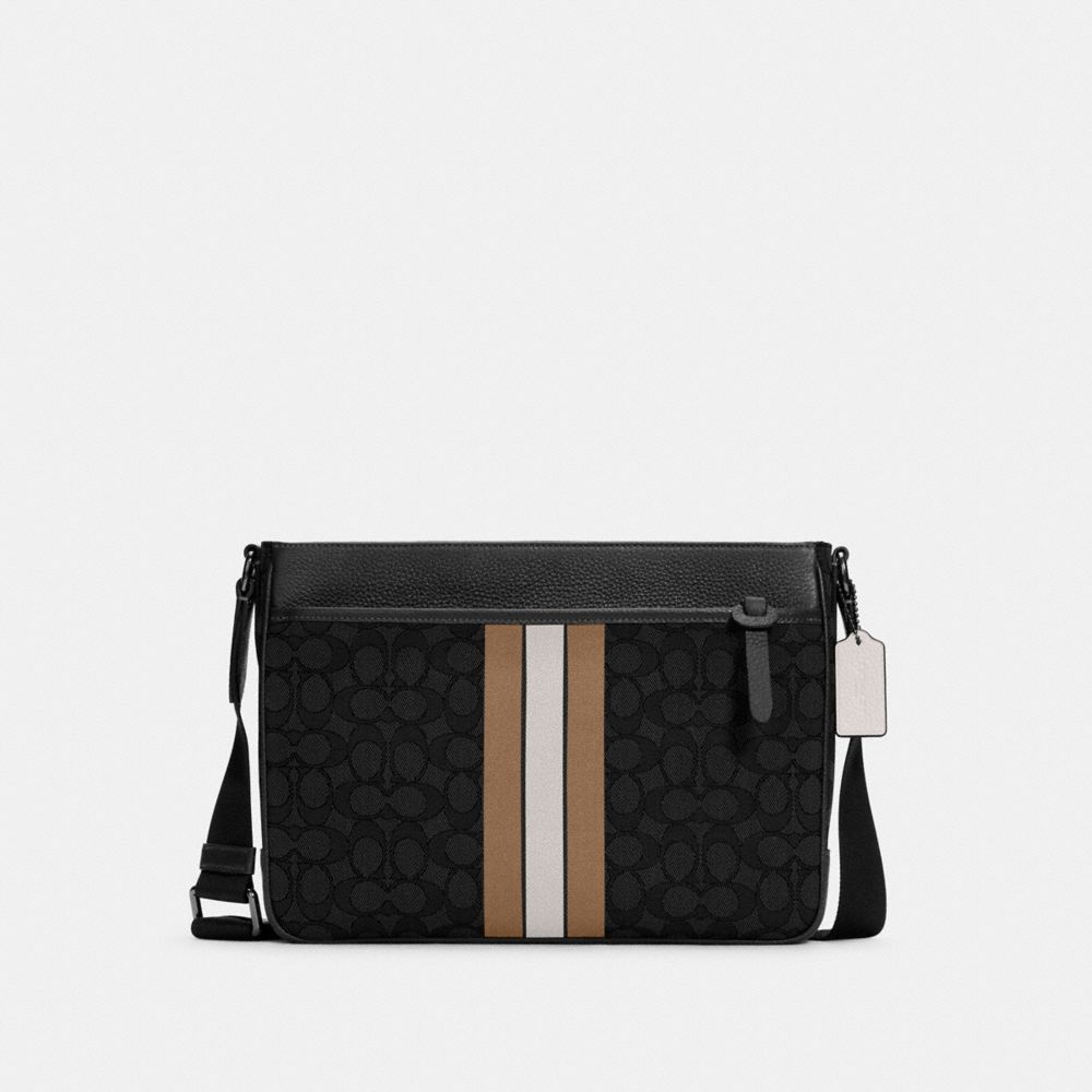 THOMPSON CROSSBODY IN SIGNATURE JACQUARD WITH VARSITY STRIPE
