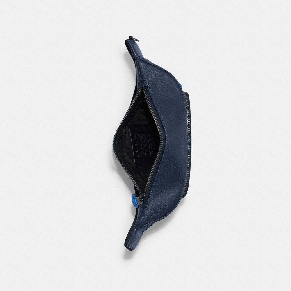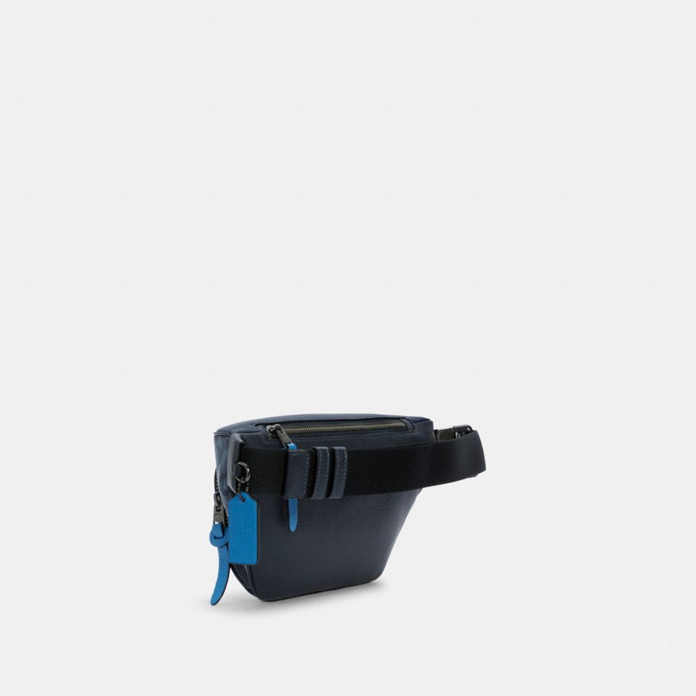 Signature jacquard and refined pebble leather| Inside multifunction pocket| Zip closure, fabric lining| Outside zip pocket| Adjustable strap for wear at waist| 12 3/4" (L) x 6 1/4" (H)