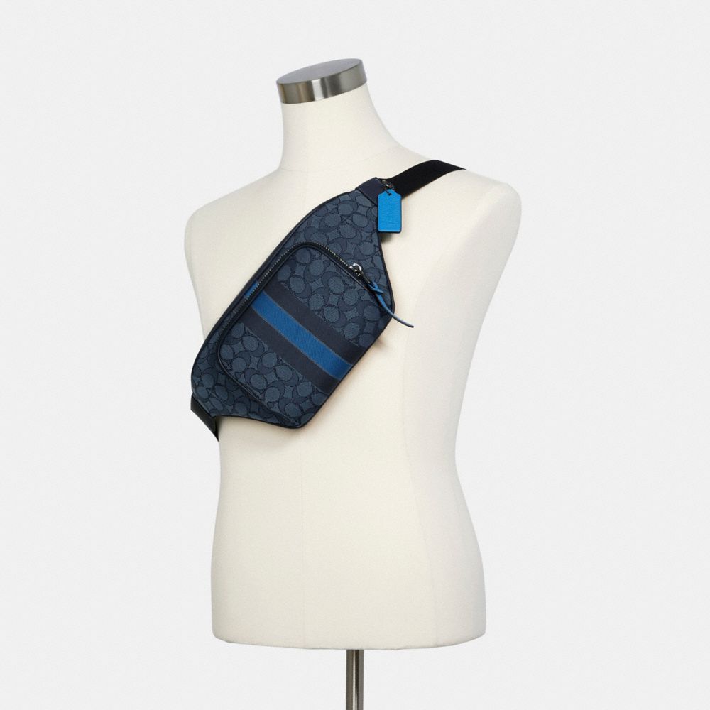 THOMPSON BELT BAG IN SIGNATURE JACQUARD WITH VARSITY STRIPE