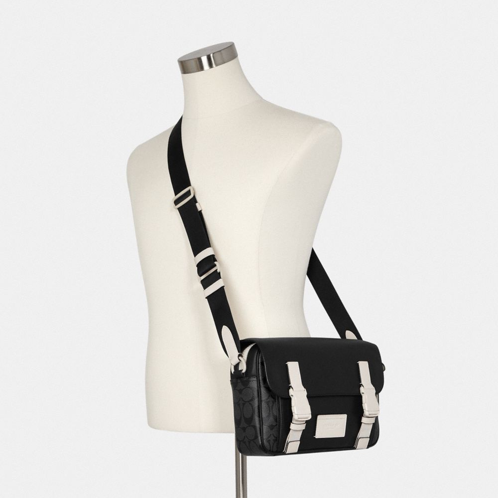 Signature coated canvas and smooth calf leather| Inside multifunction pockets| Zip and speedclip closures, fabric lining| Outside slip pocket| Adjustable strap with 25" drop for shoulder or crossbody wear| 10 1/2" (L) x 7" (H) x 2 1/2" (W)Style No. C6648
