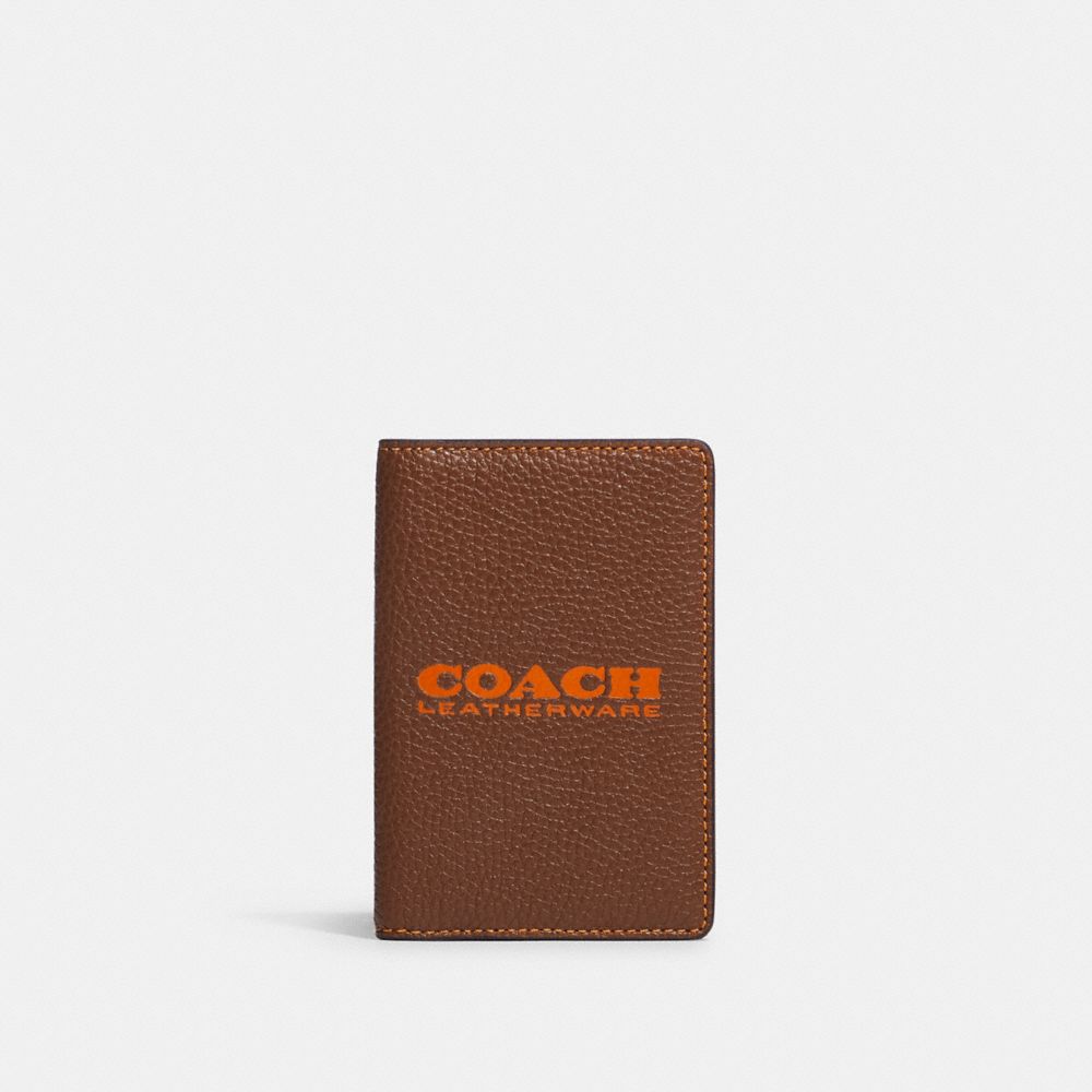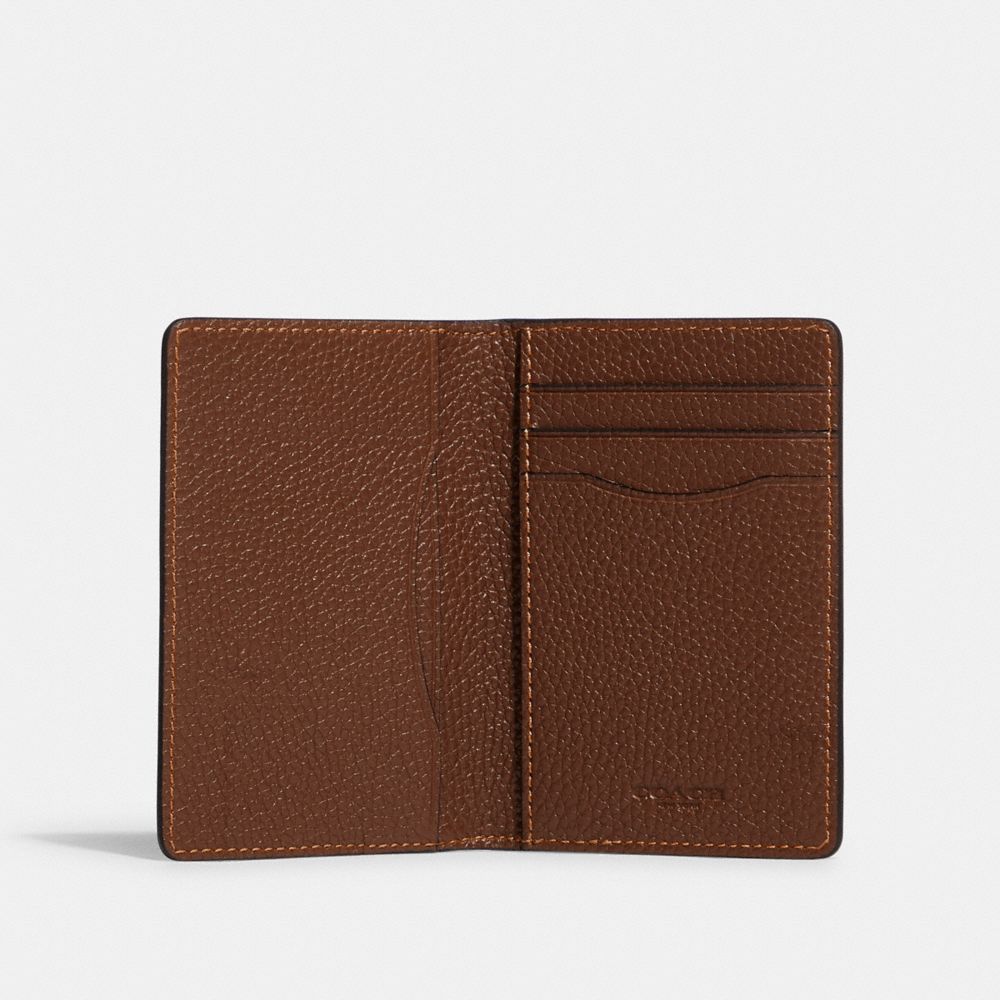 Polished pebble leather| Three credit card slots| Inside open pockets| 3" (L) x 4 1/2" (H) x 1 1/4" (W)Style No. C6703