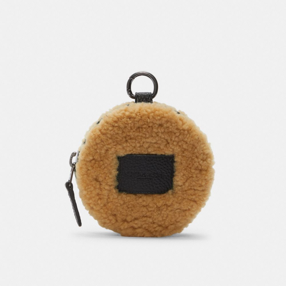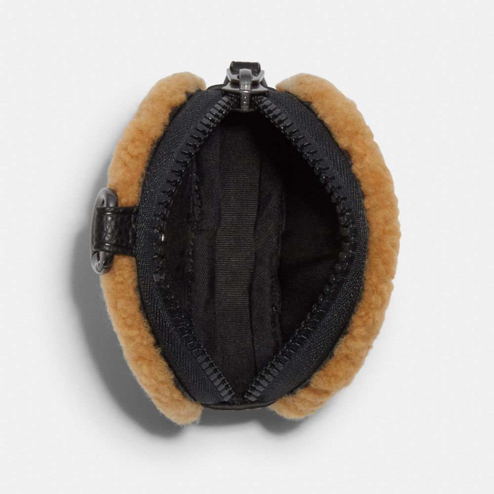 Shearling and natural pebble leather| Zip closure, fabric lining| Attached hinged key ring| 4 1/4" (L) x 4 1/4" (H) x 1" (W)Style No. C7854