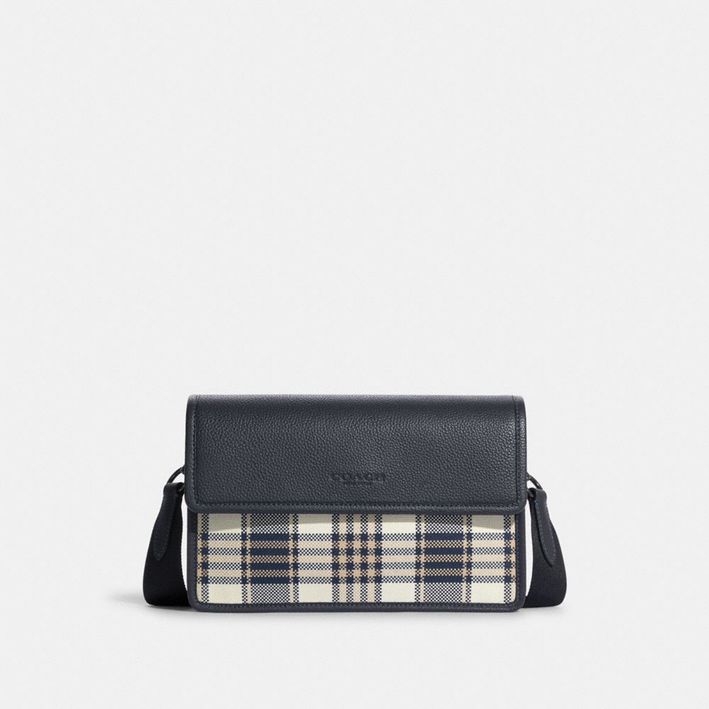 Jacquard and natural pebble leather| Inside zip pocket| Snap closure, leather lining| Outside slip pocket| Detachable strap with 25" drop for shoulder or crossbody wear| 9 3/4" (L) x 6 1/2" (H) x 2" (W)Style No. C8186